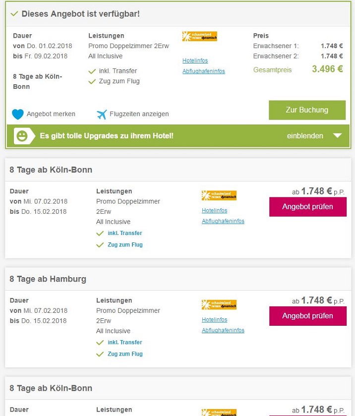 • Reisezeitraum: 01.02.2018 bis 09.02.2018 (weitere Termine erhältlich)