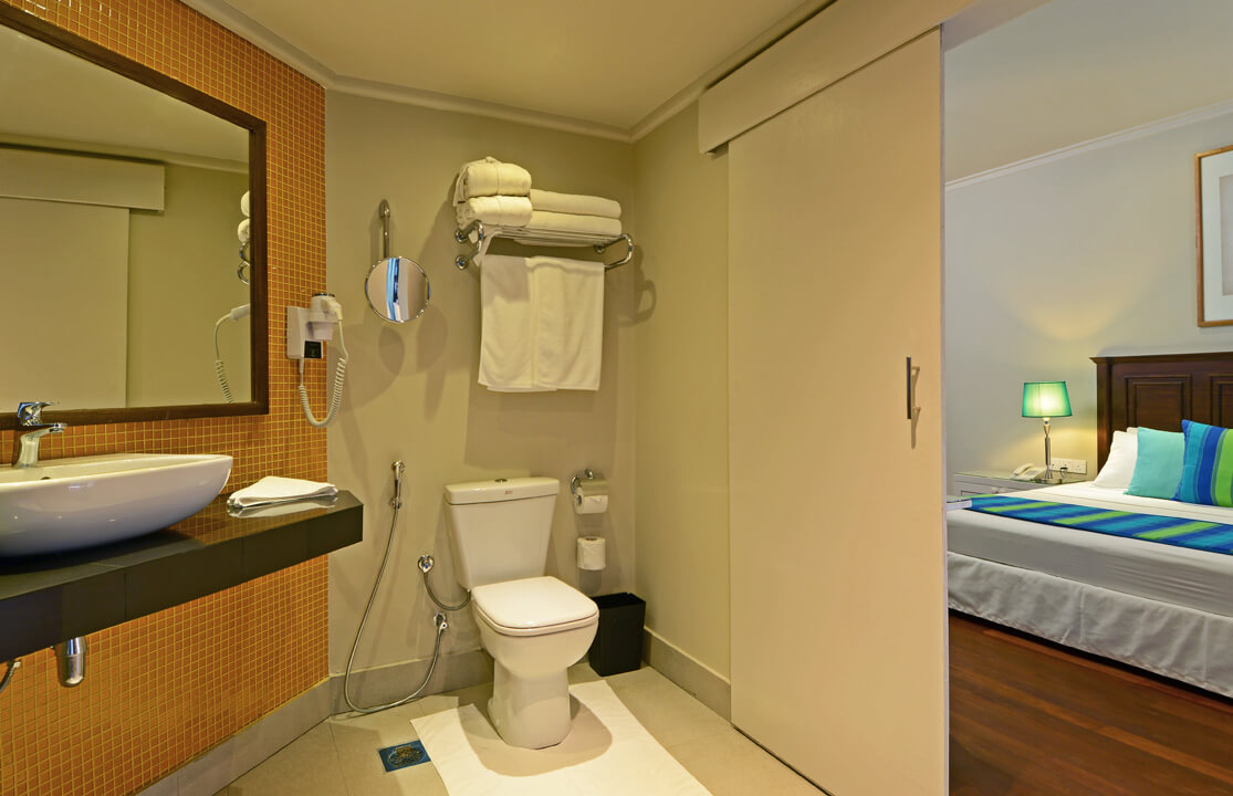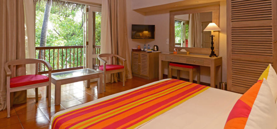 Die gebuchte Zimmerkategorie ist ein Doppelzimmer, welches auf Rannalhi korrekterweise „Standard Zimmer“ heißt. In den 96 Standard Zimmer der Insel ist alles untergebracht, was man benötigt – Bad mit Dusche, TV, Telefon, Möblierte Terrasse/Balkon, Klimaanlage, Ventilator, Mini-Bar, Safe und Sitzecke. Die Zimmer sind in zweistöckige Chalets mit je vier Einheiten pro Chalet geteilt. Von der Terrasse der dem Balkon aus kann die gesamte Schönheit der Insel bewundert werden.