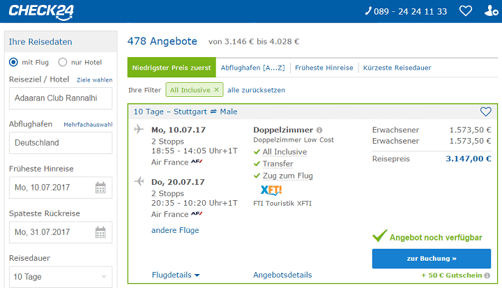 Sollte euer Datum und/oder Flughafen nicht mit dabei sein, könnt ihr auf der Seite des Anbieters gerne mit den Angaben herumspielen. Ihr könnt uns aber natürlich auch direkt kontaktieren und nach einem individuellen Deal fragen (z.B. durch unseren Chat unten rechts):