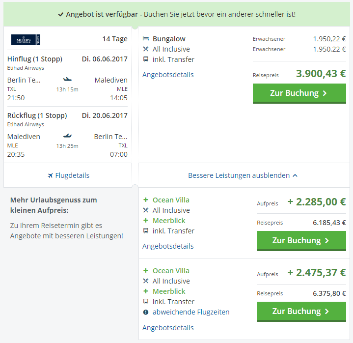 Sollte euer Datum und/oder Flughafen nicht mit dabei sein, könnt ihr auf der Seite des Anbieters gerne mit den Angaben herumspielen. Ihr könnt uns aber natürlich auch direkt kontaktieren und nach einem individuellen Deal fragen (z.B. durch unseren Chat unten rechts):