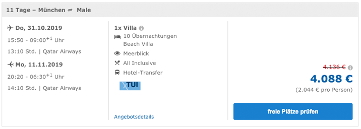 Zwei Wochen die maledivische Sonne auf der Haut spüren – das klappt mit diesem Deal wunderbar! Kehrt dem…