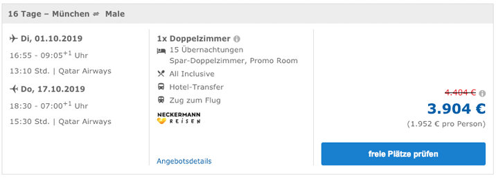 All Inclusive is the new black! Schließlich liegt der All-Inclusive-Urlaub seit Jahren voll im Trend. Und dies zu Recht! Denn auf den Malediven will man sich bestimmt keine Sorgen um Geld oder andere Dinge machen – einfach relaxen und genießen. Damit aber noch nicht genug, schicken wir dich und deine Begleitung mit diesem Deal für satte 16 Tage auf Reisen. Und das zu einem absoluten Hammerpreis (!), den ihr so schnell nicht vergessen werdet. Schau dir doch schon einmal dieses tolle Video an… 😉