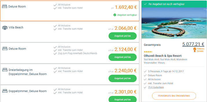 Sollte dein Wunschdatum und/oder Flughafen nicht mit dabei sein, kannst du auf der Seite des Anbieters gerne mit den Angaben herumspielen. Du kannst uns aber natürlich auch direkt kontaktieren und nach einem individuellen Deal fragen (z.B. durch unseren Chat unten rechts).