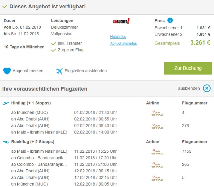 Sollten das angegebene Datum und/oder der Flughafen nicht deinem Wunsch entsprechen, kannst du gerne auf unseren grün hinterlegten „Deal individualisieren“ Button klicken und die Reisedaten entsprechend anpassen.