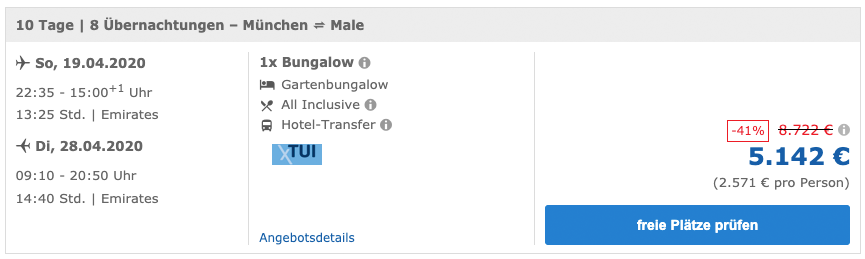 Sollten das angegebene Datum und/oder der Flughafen nicht deinem Wunsch entsprechen, kannst du gerne auf unseren grün hinterlegten „Deal individualisieren“ Button klicken und die Reisedaten entsprechend anpassen.