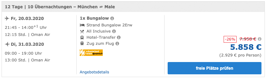 Reisezeitraum 20.03.2020 bis 31.03.2020