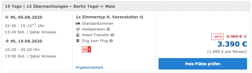 Sollten das angegebene Datum und/oder der Flughafen nicht deinem Wunsch entsprechen, kannst du gerne auf unseren grün hinterlegten „Deal individualisieren“ Button klicken und die Reisedaten entsprechend anpassen.
