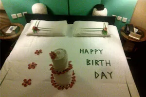 Eine weitere Sache, die ich total super fand: WĂ€hrend unseres Urlaubs hatte ich Geburtstag. An meinem besonderen Tag bekam ich dann beim Abendessen vom Resortpersonal Blumen auf den Tisch gestellt und als Nachtisch einen kleinen Kuchen mit zwei Kerzen und der Aufschrift âHappy Birthdayâ serviert. Richtig schön gemacht! Aber damit nicht genug! Als wir spĂ€ter auf unser Zimmer kamen, war das Bett wundervoll dekoriert worden. Das war wirklich so eine schöne Geste, ĂŒber die ich mich auch im Nachhinein noch sehr freue!