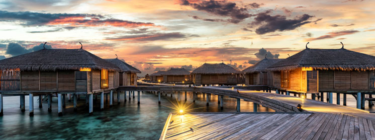 Ein Malediven Wasserbungalow in einem Resort bietet Möglichkeiten, die keine andere Unterkunftsart anbieten kann. Wohnen und Schlafen über Tage direkt über dem Meer, die Meeresbewohner nur einen Glasboden entfernt und das nächste Tauch- und Schnorchelabenteuer in wenigen Stufen erreicht. Das bieten nur die Malediven und dort auch nur die exklusivste aller Übernachtungsmöglichkeiten in einem Resort. Dazu die Ruhe, die diese Unterkunft bietet und die Möglichkeit, sich aus dem Trubel der Bar und der Restaurants an das Ende der Insel zurückzuziehen. Beste Voraussetzungen, um den Urlaub in einer der schönsten Regionen der Welt zu einem unvergesslichen Ereignis durch die Wasserbungalows werden zu lassen.