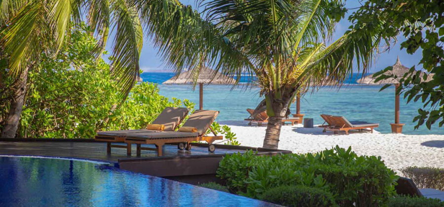 Eine schöne Außenpoolanlage mit Liegestühlen und Sonnenschirmen, diverse Einkaufsmöglichkeiten und ein gepflegter Wellnessbereich runden das Angebot im Adaaran Prestige Vadoo Hotel gekonnt ab und verpassen dem Resort den letzten Feinschliff.