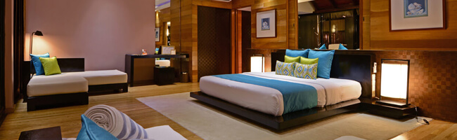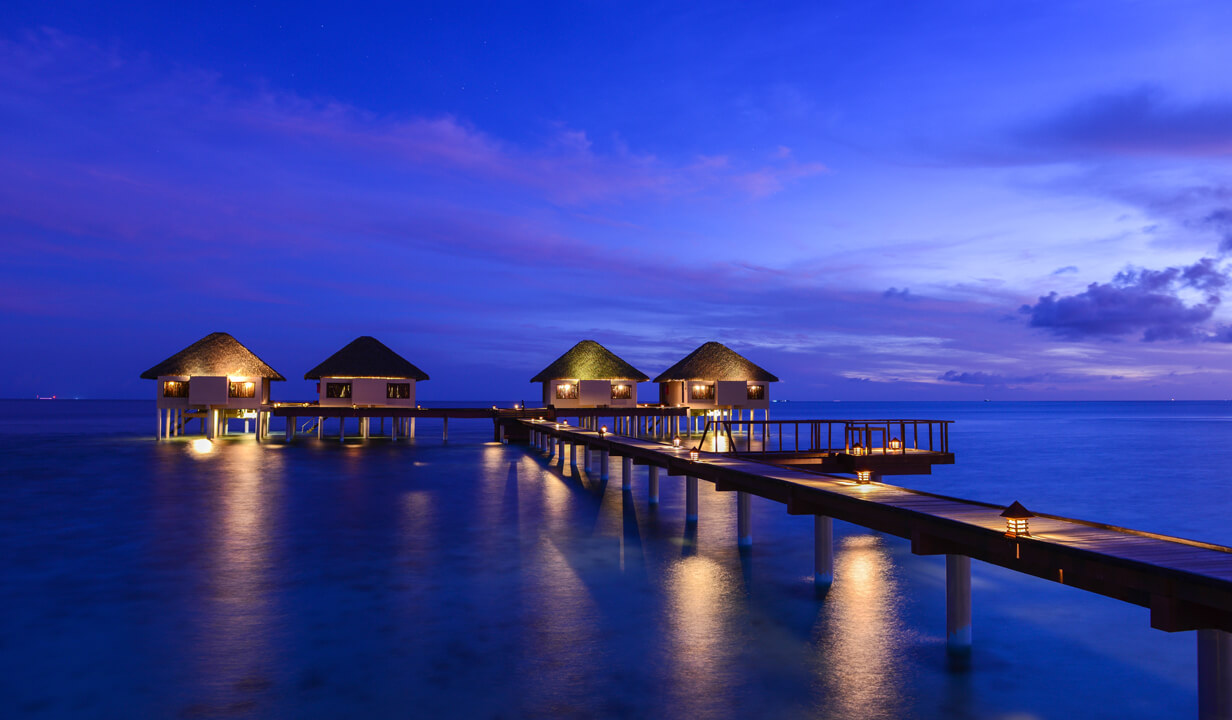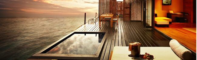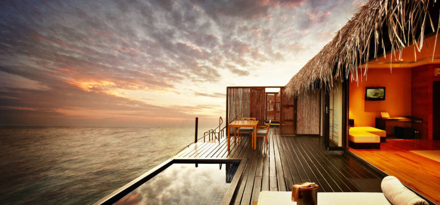 Die Sunset Water Villa ist im Grunde genommen baugleich zur Sunrise Water Villa. Im Gegensatz zu dieser ist sie jedoch so platziert, dass in ihr paradiesische Sonnenuntergänge bestaunt werden können. Auf dem privaten Sonnendeck im eigenen Pool dem Himmel dabei zuschauen, wie er sich in die schönsten Rottöne kleidet – herrlich!
