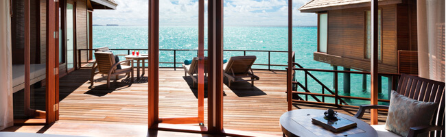 Die Sunset Over Water Suite ist ähnlich wie die Sunrise Over Water Suite eingerichtet und konstruiert worden. Allerdings gibt es einen kleinen Unterschied: Im Gegensatz zur Sunrise-Version, in der sich tolle Sonnenaufgänge bewundern lassen, kann man in der Sunset-Over-Water-Villa herrliche Sonnenuntergänge bestaunen.