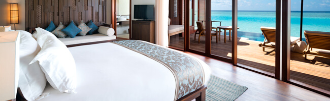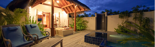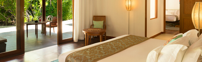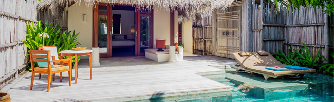 Ebenfalls einen Blick auf den Sonnenuntergang ermöglicht die Sunset Pool Villa des Anantara Dhigu. Darüber hinaus verfügt diese Villa über eine Grundfläche von 180 qm und schenkt durch ihre geräumige Größe sehr viel Platz zum Wohlfühlen. Als Highlight gilt der private Pool dieser Unterkunft, der Dir nicht nur einen Hauch Exklusivität schenkt, sondern vor allem auch ein Maximum an Privatsphäre garantiert. Ansonsten kannst Du in dieser Villa dieselben Extras antreffen wie in den Vorgängermodellen.