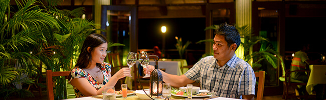 Ebenfalls ins Meer hineingebaut ist das Sonnendeck des Café und Restaurant Huvan schon ab 7:30 Uhr und dann bis Mitternacht geöffnet. Hier kannst Du wunderbare Stunden in der Sonne oder später dann unter dem klaren Sternenhimmel verbringen. Auf der Speisekarte findest Du verschiedene internationale Gerichte, Frühstücksvarianten, Sandwiches, Pizza, Pasta, Suppen, Nudel- und Reisgerichte, Häppchen und Snacks, Seafood und viele andere Leckereien, die das Leben im Hotel bzw. Resort noch angenehmer machen.