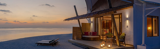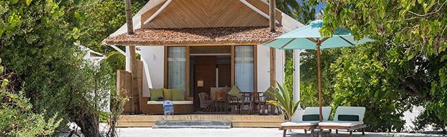 Die Strandbungalows des Cinnamon Hakuraa sind ein wahrer Augenschmaus! Terrakottakacheln, gewebte Wandbehänge und ein modernes Mobiliar machen einen Aufenthalt in diesen Unterkünften zu einem wahren Genuss. Als besonders Highlight ist jedoch die Lage der Bungalows zu nennen: In direkter Strandnähe mit dem blauen Ozean vor Augen kannst Du hier tolle Momente genießen. Zudem weisen die Strandbungalows eine Größe von 70 qm auf und bieten somit bereits genügend Raum, um Dein Gepäck bestens verstauen zu können und dabei noch reichlich Platz für Dich selbst zu haben. Die offene Veranda, welche zur Meerseite ausgerichtet ist und private Sonnenliegen für Dich bereithält, verleiht diesem Bungalow das perfekte Finish und macht Deinen Aufenthalt im Cinnamon Hakuraa Maldives rundum perfekt!