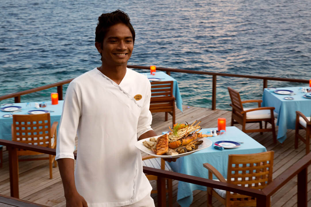 Das Aqua verfügt über eine ganz besondere Atmosphäre. Auf Stelzen über dem Wasser errichtet, bietet es unter freiem Himmel feinstes Seafood mit asiatischer Note an. Hier kannst Du die feinsten Fischarten testen und dabei das tolle Ambiente und die Aussicht über dem rauschenden Indischen Ozean genießen.