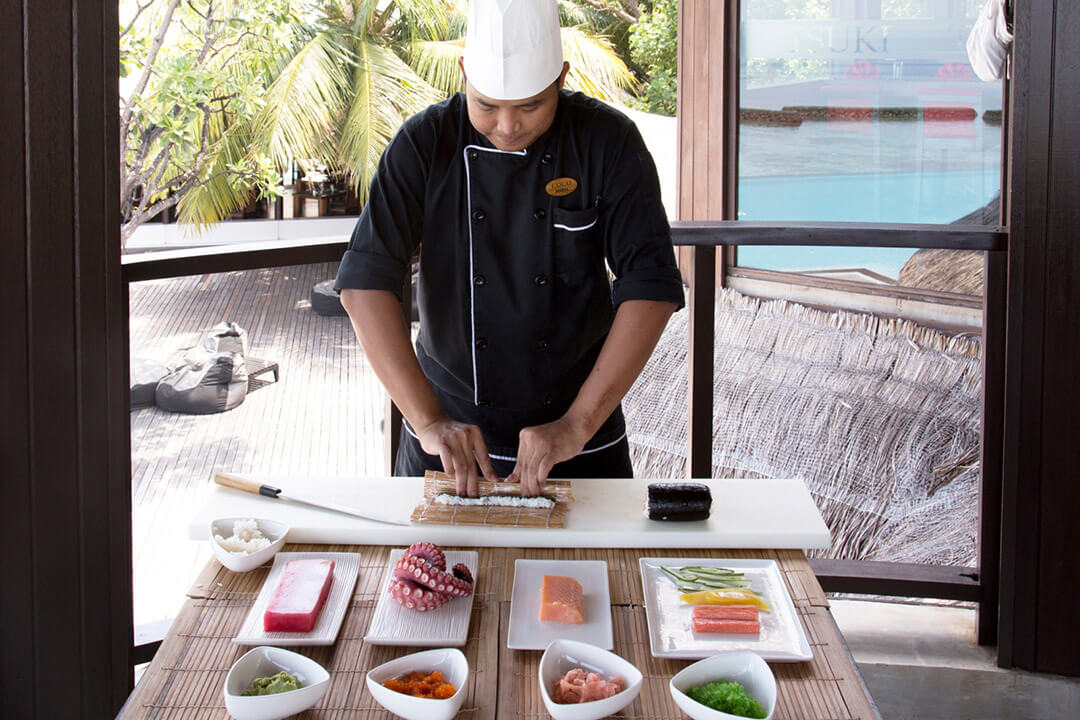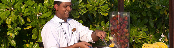 In Sachen Verpflegung bietet das Malediven Coco Bodu Hithi die Varianten Halbpension und Vollpension im Hotel. Dabei hast Du die Qual der Wahl, in welchem Restaurant Du Deine Mahlzeiten verzehren möchtest. Das Coco Bodu wartet mit insgesamt 5 ausgezeichneten Restaurants auf, in denen erlesene Speisen und Weine serviert werden. Jedes Restaurant verfügen sowohl über einen Innen- als auch einen Außenbereich. Weiterhin wechseln die Restaurants täglich ihre Karte: Von gegrillten Köstlichkeiten bis zur spannenden japanischen Küche ist hier alles erhältlich. Wer jedoch keine Lust haben sollte, in einem der Restaurants zu speisen, hat die Möglichkeit, den In-Villa-Service des Hotels in Anspruch zu nehmen. Hier kannst Du À-la-carte-Speisen für die jeweilige Mahlzeit auswählen und Dir direkt in die Villa bringen lassen.