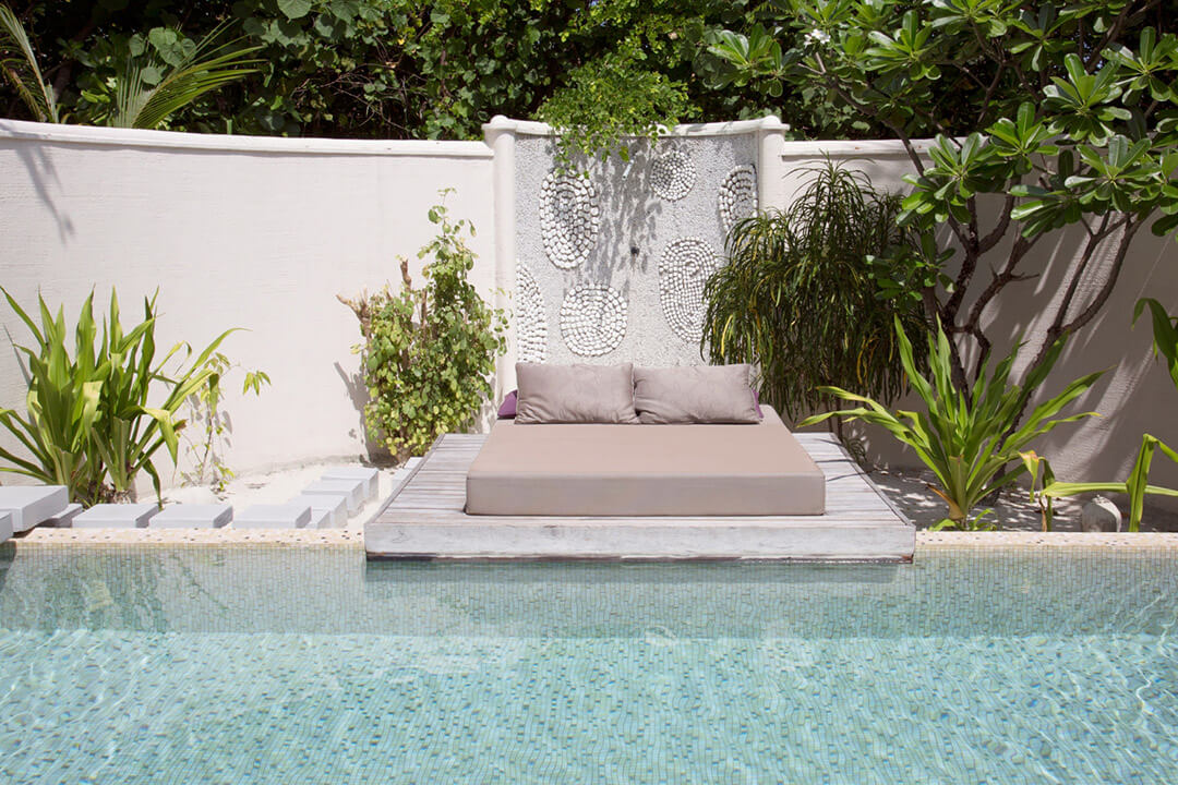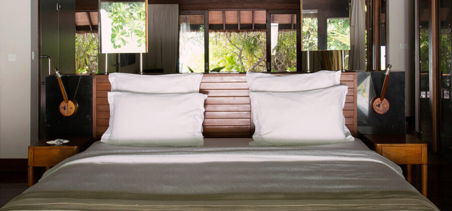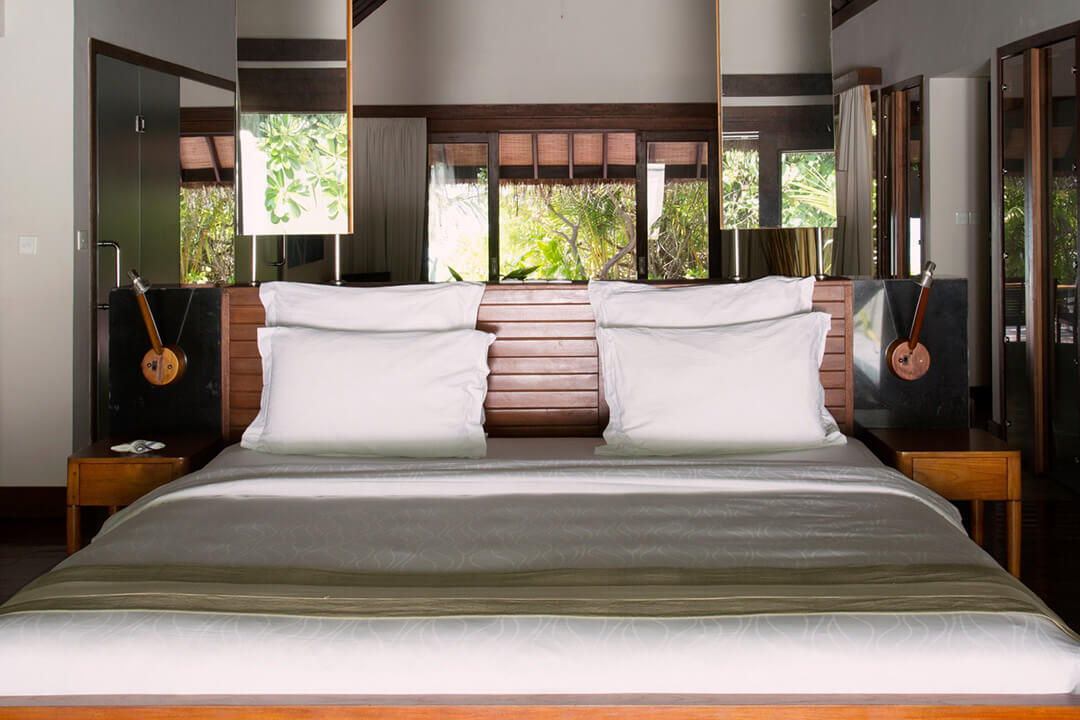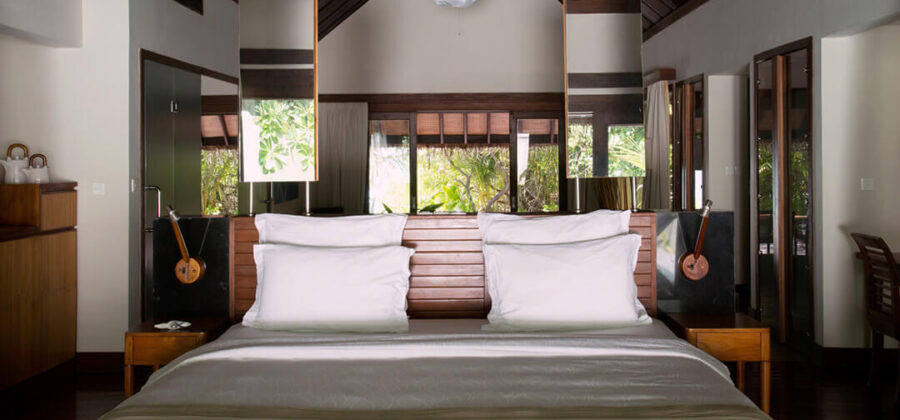 Die 44 Island Villen sind jeweils ca. 188 qm groß und bestechen bereits jetzt durch ihre grundlegende Größe der Zimmer. Das kombinierte Bade- und Schlafzimmer ist optisch durch Stufen getrennt und vermittelt einen gemütlichen, aber modernen Gesamteindruck. Die Villen, die im Inneren der Insel mitten in schönster Vegetation liegen, bieten auch einen sichtgeschützten Garten zur Entspannung im Freien. So kann sich jeder Gast ganz bewusst zurücklehnen und muss keine ungebetenen Blicke während des Sonnenbadens fürchten.
