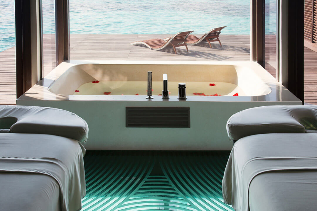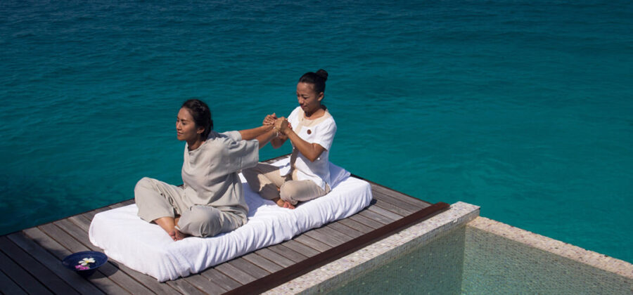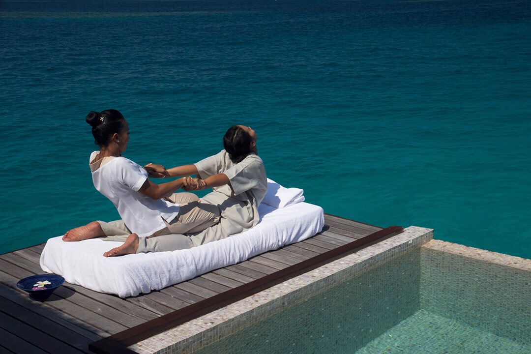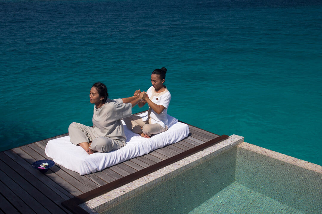 Der Spa- und Wellnessbereich im Hotel hat eine Menge zu bieten. Das exklusive Coco Spa ist auf Stelzen über dem Wasser erbaut und besitzt 8 Behandlungsräume. Zwei dieser Behandlungsräume verfügen über Glasböden und ermöglichen es Dir, die Tiere, die unter dem Spa hindurchschwimmen, zu bestaunen. Eine Sauna, ein Dampfbad sowie ein großes Ruhedeck mit einem eigenen kleinen Pool und einem offenen Yoga-Pavillon ermöglichen dir absolute Entspannung. Die Anwendungen und die Massagen, die hier angeboten werden, beruhen auf indischen, indonesischen, thailändischen und ayurvedischen Traditionen.
