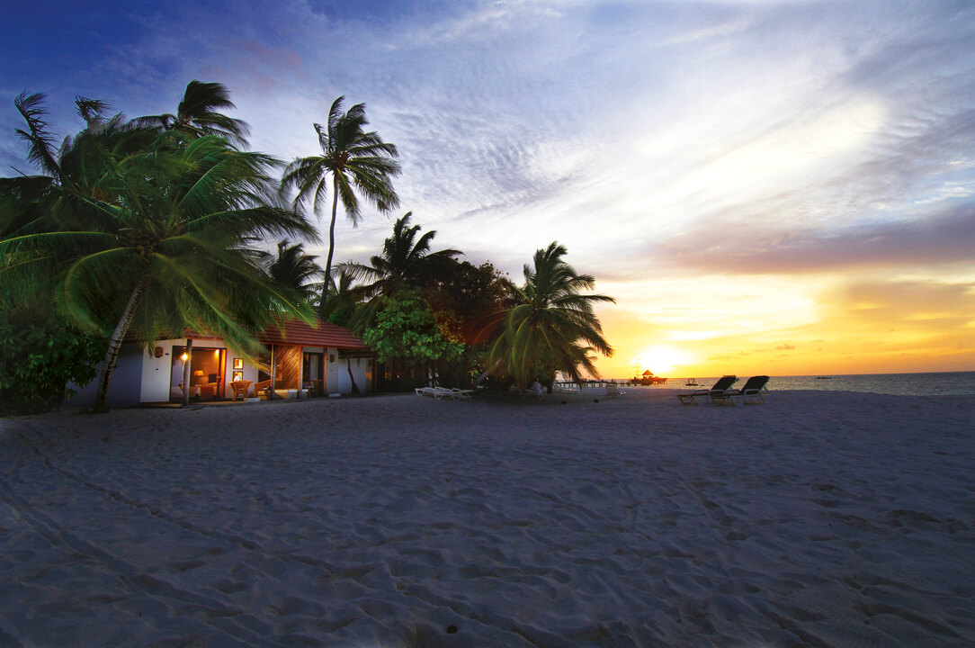 Die 31 Strandbungalows entsprechen exakt dieser Beschreibung. Ihre Terrassen sind mit Sesseln, Tischen und Liegen ausgestattet und eignen sich perfekt für ein ausgiebiges Sonnenbad. Mit 35 qm wirken die Strandbungalows im Vergleich zu den anderen hier im Angebot enthaltenen Villen eher klein. Der Platz sollte jedoch genügen, um einen bequemen und schönen Urlaub mit dem typischen Hauch von Malediven-Luxus verbringen zu können. Natürlich befindet sich der Strand in direkter Nähe zu den Strandbungalows, sodass man stets einen Abstecher ins kühle Nass unternehmen kann.
