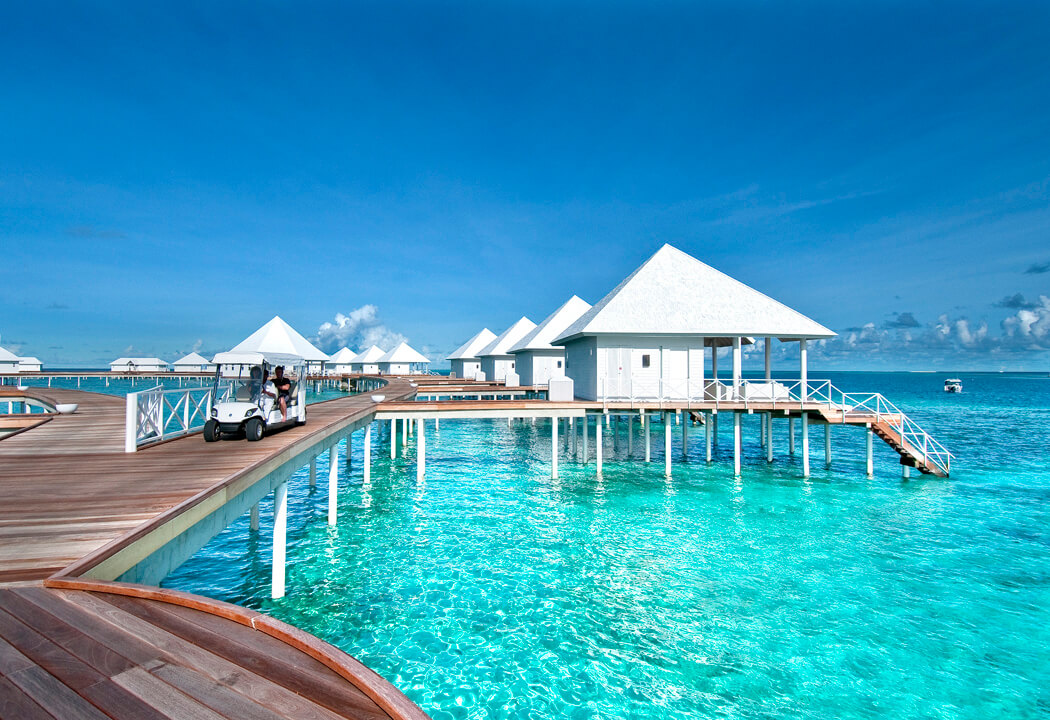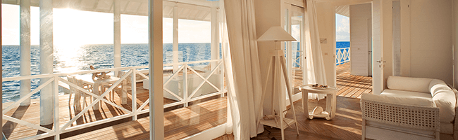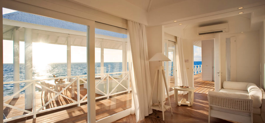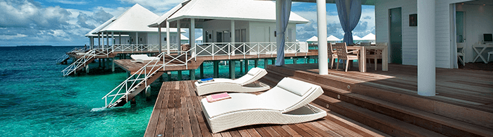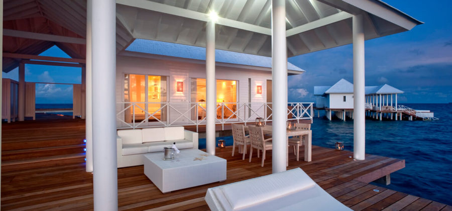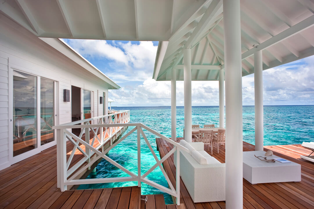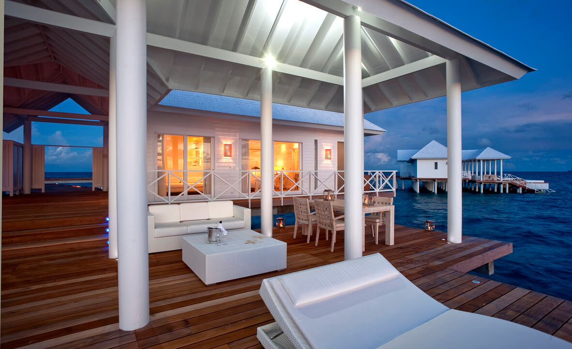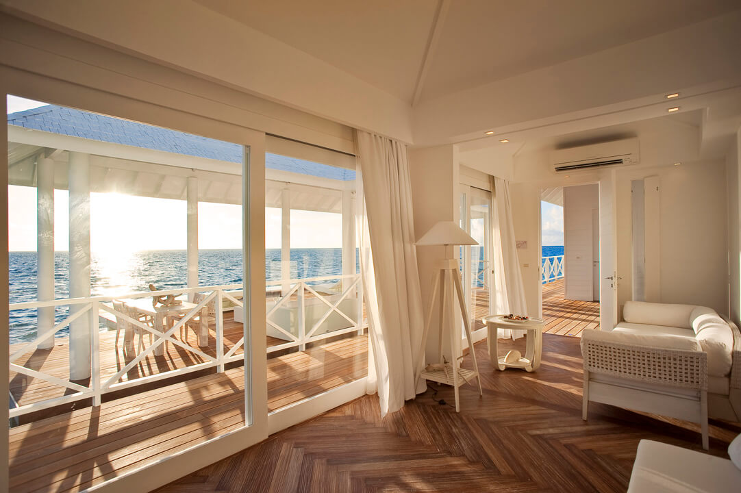Die klassischen Wasservillen im Hause Diamonds Thudufushi Island Resort werden insgemsamt 18 Mal angeboten. Mit 120 qm bieten sie allen nur erdenklichen Raum, damit Du Dich im Urlaub komplett frei entfalten kannst. Dazu sind Wasservillen, die auf Stelzen direkt ins Meer hineingebaut sind, natürlich der Inbegriff eines jeden Malediventraums. Die Wasser Villen sind vom Prinzip her identisch eingerichtet wie die Strandbungalows, nur ist ihre Terrasse deutlich größer. Ebenfalls ein Pluspunkt: Der eigene Zugang zum Meer von der Terrasse aus. Hier den Sonnenauf- als auch den Sonnenuntergang zu genießen, ist für sich genommen schon die weite Reise wert. Zusätzlich verfügen die Wasser Villen noch über eine Espressomaschine.