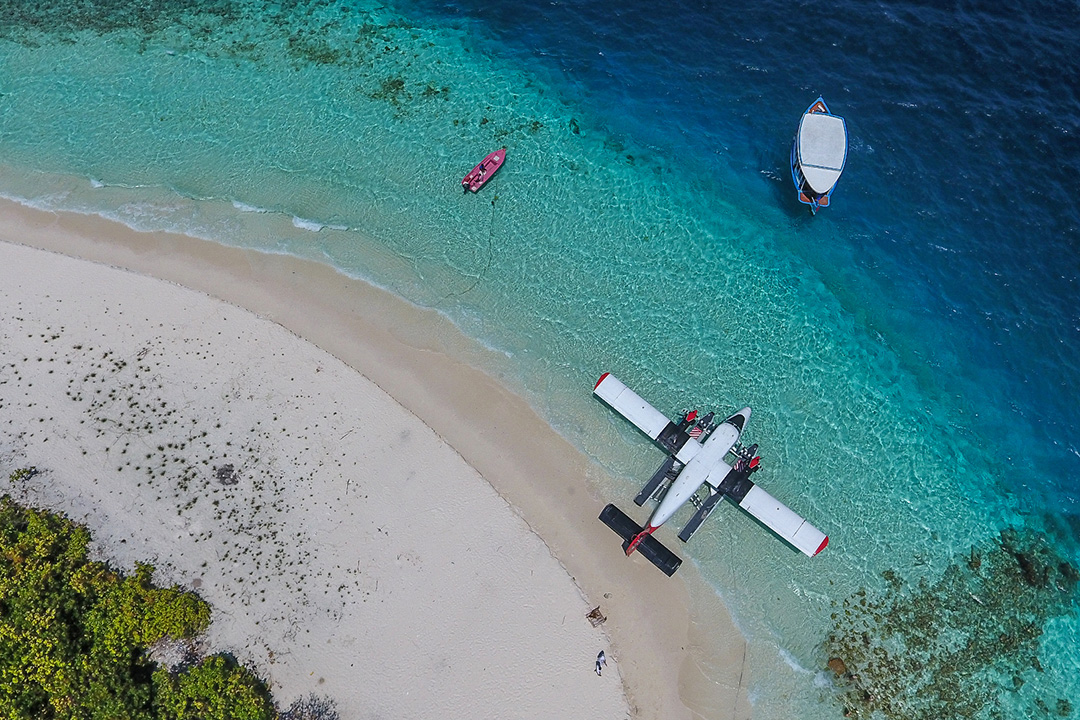 Das 5 Sterne Diamonds Thudufushi Island Resort am westlichen Rand des Süd Ari Atoll ist in rund 25 Minuten mit dem Wasserflugzeug vom Flughafen in Male aus zu erreichen. Die Hotelinsel, auf der Du das Resort mit den beliebten Diamonds Thudufushi Beach & Water Villas findest, misst gerade einmal 300 mal 300 Meter und wirkt wie ein paradiesischer Fleck inmitten des weiten Blaus des Indischen Ozeans. Aus der Luft betrachtet, ist allein diese Insel schon ein kleines Wunder der Natur. Ein Vorteil aller Resorts, die Du mit dem Wasserflugzeug anfliegst: Du hast vorher schon die Möglichkeit, einen traumhaften Einblick in die Schönheit der Malediven zu bekommen. Solch vergleichbare Naturbilder findet man nur an ganz wenigen Stellen auf der Welt. Die Kamera also auf jeden Fall griffbereit halten.