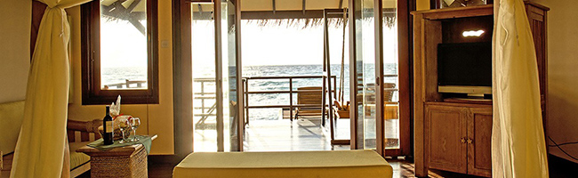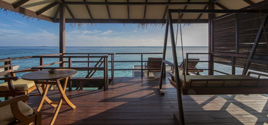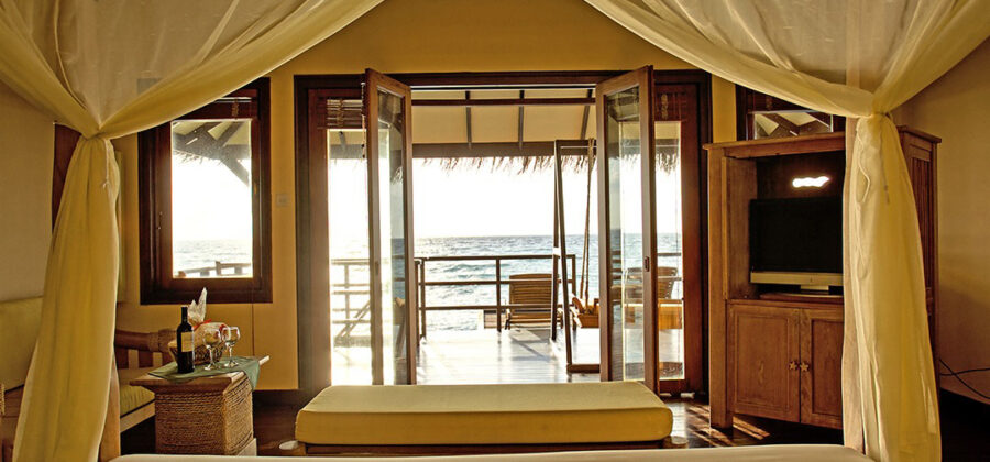 Die Water Villa ist der Traum eines jeden Malediven Reisenden. Generell sind es diese auf Stelzen in das Meer hineingebauten Water Villen, die das typische Bild prägen, welches viele Urlauber von den Malediven haben. 90 qm Platz bieten Dir die Water Villen im Filitheyo Island Resort Malediven. Dazu einen privaten Jacuzzi im Badezimmer. Ansonsten ist die Einrichtung so gestaltet wie die der Deluxe Villa. In der Water Villa hast Du außerdem die Möglichkeit, gegen Aufpreis das WLAN zu nutzen. Dazu kommt eine geräumige Terrasse, die mit Sesseln, Liegen und einem Tisch bestückt ist und von der Du direkt in die Fluten des Indischen Ozeans hinabsteigen kannst, um ein erfrischendes Bad zu nehmen.