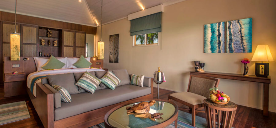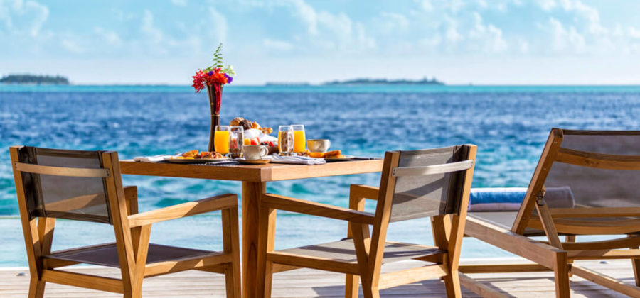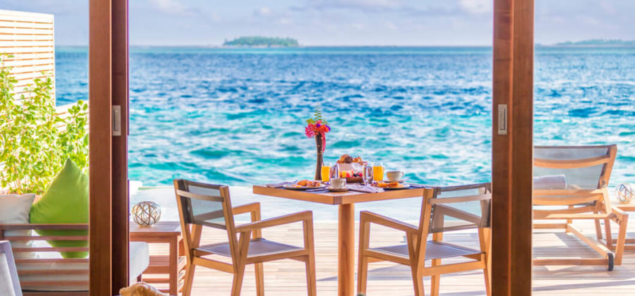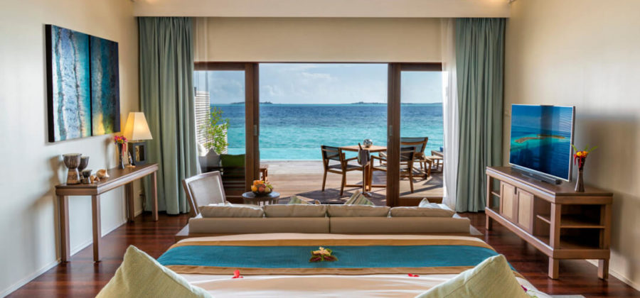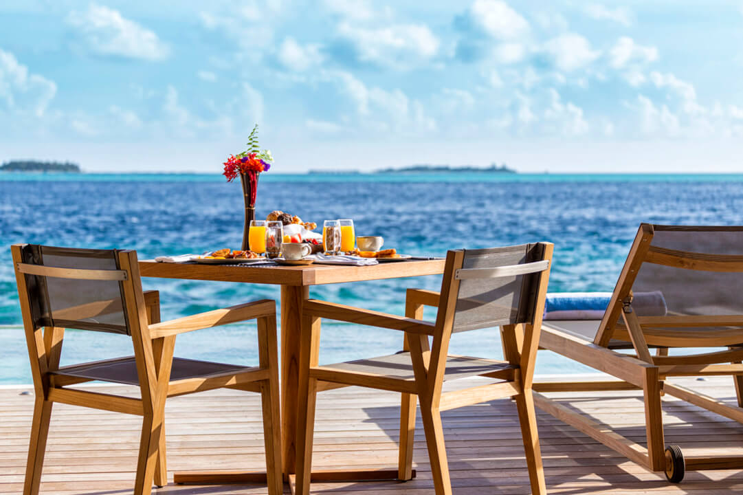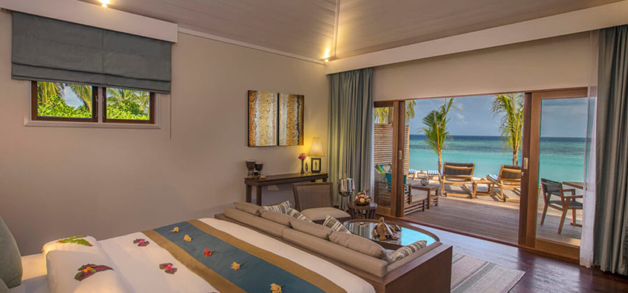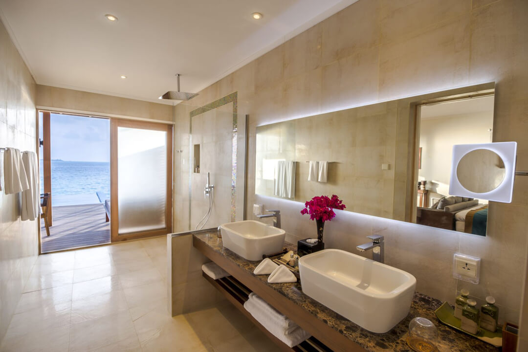 Anders als die Beach Villen befinden sich die Ocean Villen allesamt über dem glasklaren Wasser des Indischen Ozeans. Die Ocean Villa verfügt zwar über dieselbe Grundfläche sowie ein ähnliches Mobiliar und Design wie die Beach Villa, dennoch versprüht sie dank ihrer Lage über dem Wasser einen etwas stärkeren Hauch von Exklusivität und Luxus. Zudem besitzt sie eine Treppe, mithilfe derer Du Dich direkt von Deiner Terrasse in die warmen Fluten des türkisblauen Meeres begeben kannst.