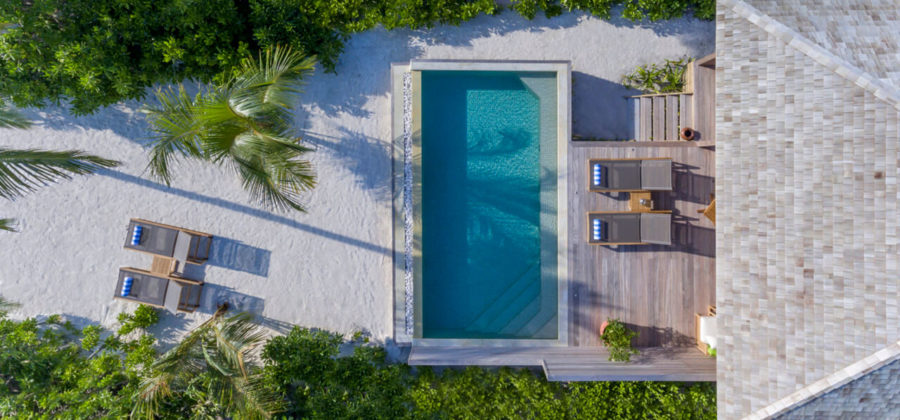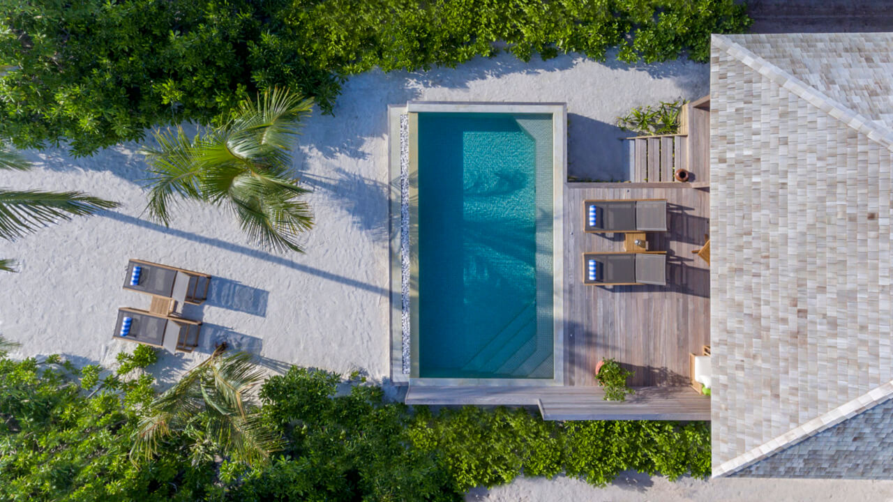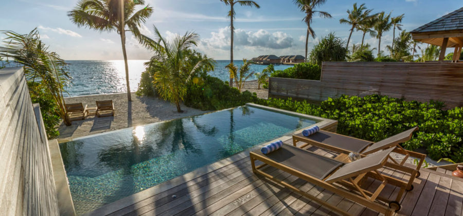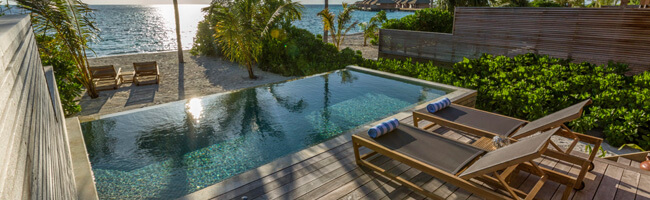 Bei gleicher Größe wie ihre beiden Vorgänger bietet auch diese Beach Villa ein hohes Maß an Platz und Komfort. Anders jedoch als die beiden vorherigen Modelle verfügt diese Unterkunft über einen eigenen Pool und eine etwas geräumigere Veranda. Wenn Du schon immer mal in den Genuss eines Privatpools kommen wolltest, könnte diese Form der Unterkunft genau richtig für Dich sein.