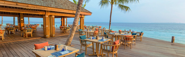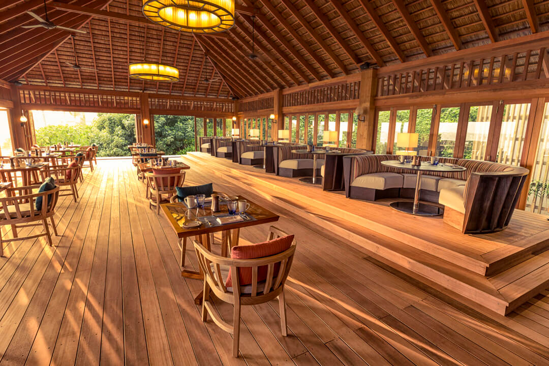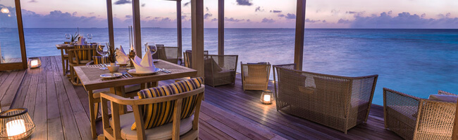 Das Canneli Restaurant ist das Hauptrestaurant des Hurawalhi Maldives und befindet sich in unmittelbarer Nähe zum blauen Ozean. Hier kannst Du sowohl Dein Frühstück, Mittag- als auch Abendessen genießen und dabei entweder im luxuriösen Innenbereich speisen oder es Dir auf der offenen Terrasse des Restaurants gemütlich machen. Die große Auswahl an internationalen Gerichten wird in Büffet-Form serviert und in einer appetitlichen und eleganten Weise angerichtet. So erzielt dieses Hauptrestaurant des Hurawalhi Maldives bereits beim Betreten der Einrichtung einen Wow-Effekt.