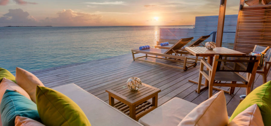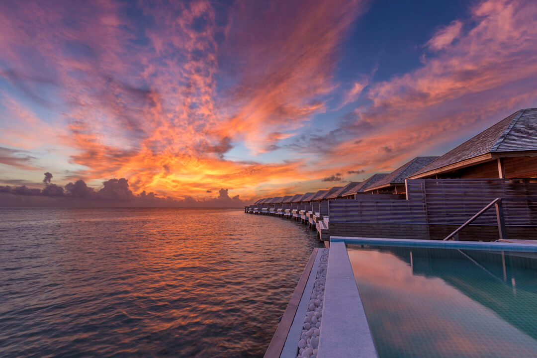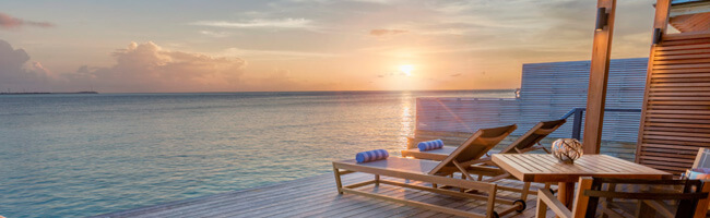 Die Romantic Ocean Villa des Hurawalhi Island Resort ist eine Ocean Villa, die jedoch nicht zur Sonnenaufgangs-, sondern zur Sonnenuntergangsseite ausgerichtet ist. Wenn Du während Deines Urlaubs im Hurawalhi Island Resort keinen Sonnenuntergang missen möchtest, ist die Romantic Ocean Villa genau die passende Wahl für Dich. Auf einer Sonnenliege auf der privaten Terrasse direkt über dem Meer dem Himmel dabei zuschauen, wie er in den schönsten Rottönen erstrahlt – was will man mehr? Eventuell eine freistehende Badewanne auf der blickgeschützten Terrasse? Die kriegt ihr!