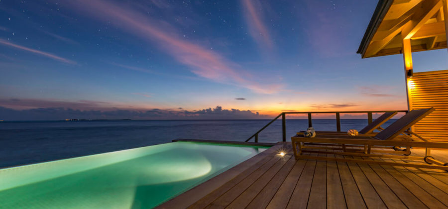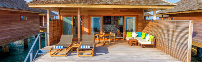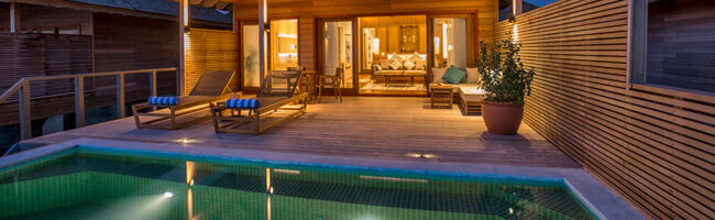 Mit einer Größe von 132 qm stellt diese Villa noch mehr Platz zur Verfügung als ihre Vorgänger. Zudem zeichnet sie sich durch eine sehr luxuriöse Inneneinrichtung und ein edles und modernes Design aus. Das ultimative Nonplusultra dieser Villa: Sie verfügt über einen privaten Pool, der sich am äußeren Rand der Außenterrasse befindet. Im Wasser über dem Wasser – ein Erlebnis für die Ewigkeit!