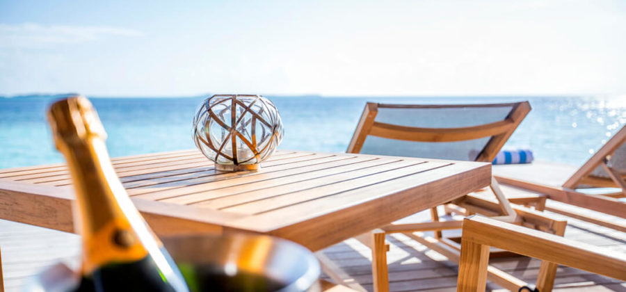 Einen absoluten Gegensatz zur Coco Bar bildet der Champagner Pavillon. Dieser romantische Pavillon, welcher sich an einem ruhigen Platz am Strand befindet, bildet den perfekten Rückzugsort für Verliebte und Ruhesuchende und lässt diese in eine Welt voll Harmonie, Schönheit und Faszination eintauchen.