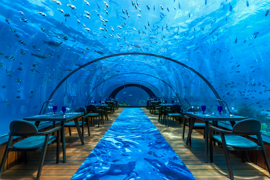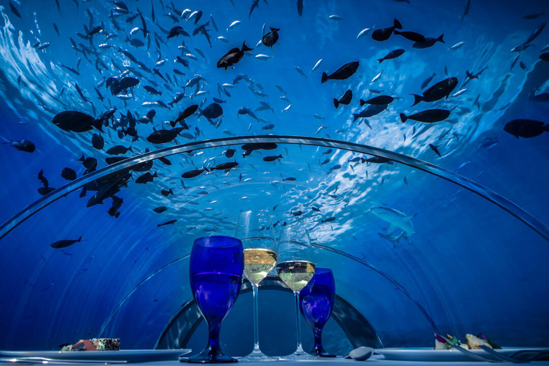 5,8 Meter unter der Meeresoberfläche wurde das weltweit größte Unterwasserrestaurant aus Glas erbaut. Ein Essen im 5.8 Undersea Restaurant ist demnach wahrlich ein Erlebnis für die Ewigkeit. Insgesamt 16 Gäste können in diesem Restaurant gleichzeitig speisen und sich an exquisiten Speisen in einer exquisiten Umgebung erfreuen.