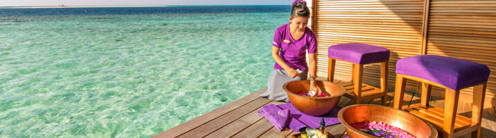 | Pakete | Verschiedene Pakete wie Ocean Dreaming, Heaven On Earth, Maldivian Serenity Ritual, Him & Her, Romantic Retreat, etc.