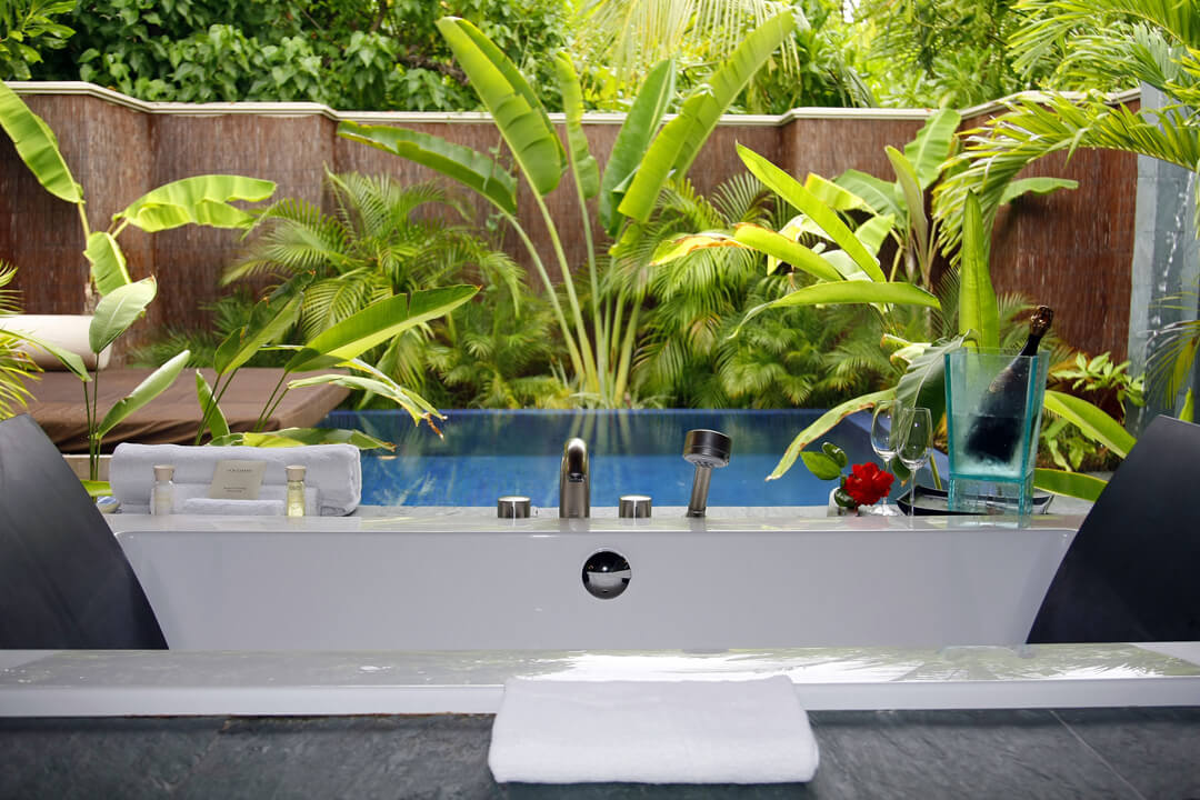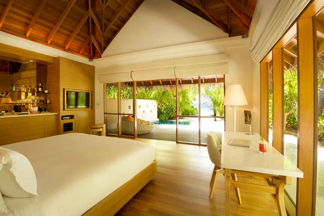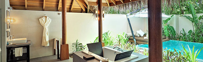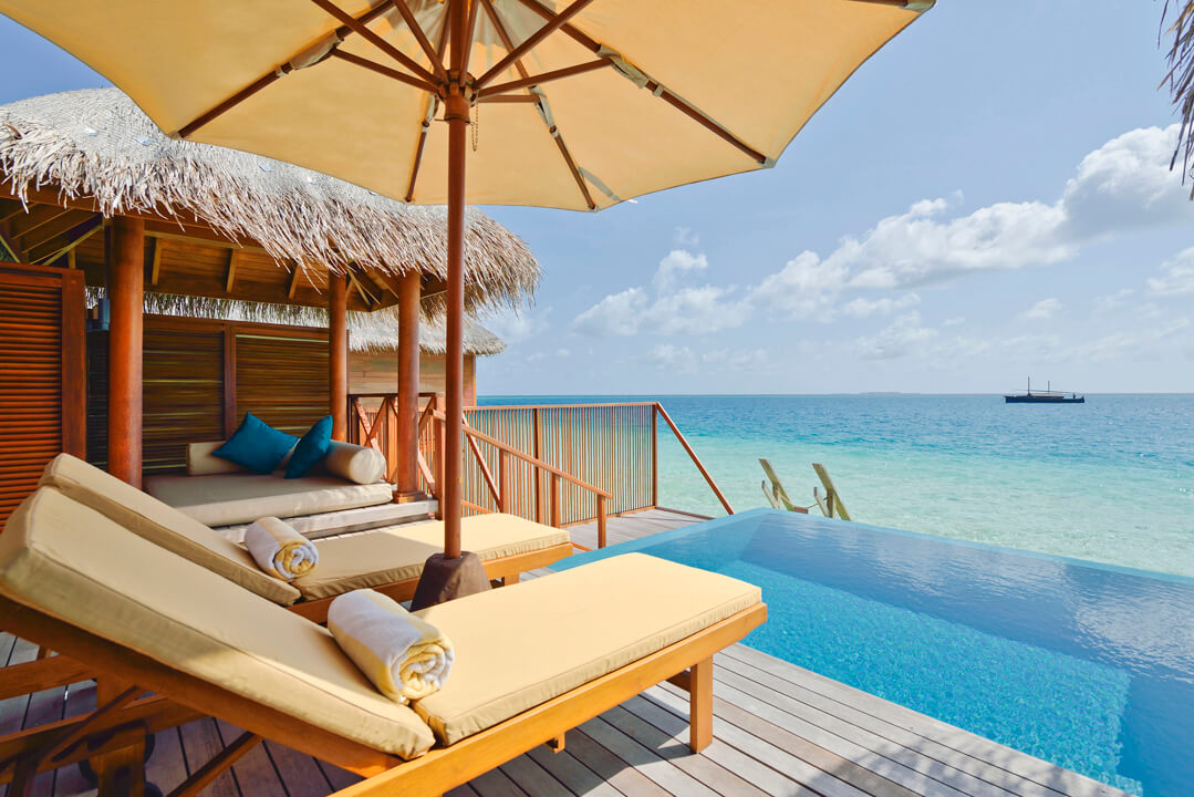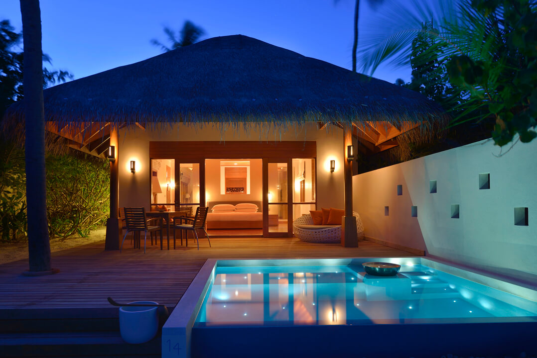 Entspanne Dich während Du von deiner Terrasse auf die Natur der Malediven blickst. Die Beach Bungalows with Pool sind perfekt, um die Seele baumeln zu lassen. Dies kannst Du vor dem Bungalow mit dem Blick aufs Wasser tun, oder im offenen Badezimmer mit Tauchbecken und Daybed. Fühle Dich wie zuhause in dem modernen eingerichteten Zimmer und der Ruhe und Privatsphäre.