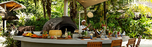 Bei dem schicken Spezialitätenrestaurant Forno fängt das Herz eines jeden Freundes der italienischen Feinschmeckerküche vor Freude an zu hüpfen. Denn dieses schöne Restaurant des Huvafen Fushi, welches sich am Strand befindet und allein aufgrund seiner Lage ein tolles Ambiente schafft, überzeugt mit Köstlichkeiten und Leckereien aus dem Herzen Italiens. La Dolce Vita mitten im Tropenparadies – das gibt’s nur im Hotel Huvafen Fushi.