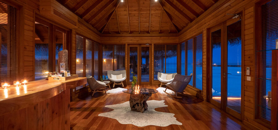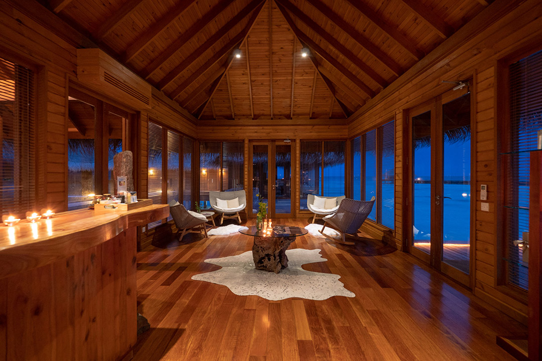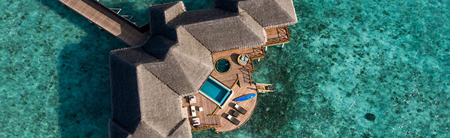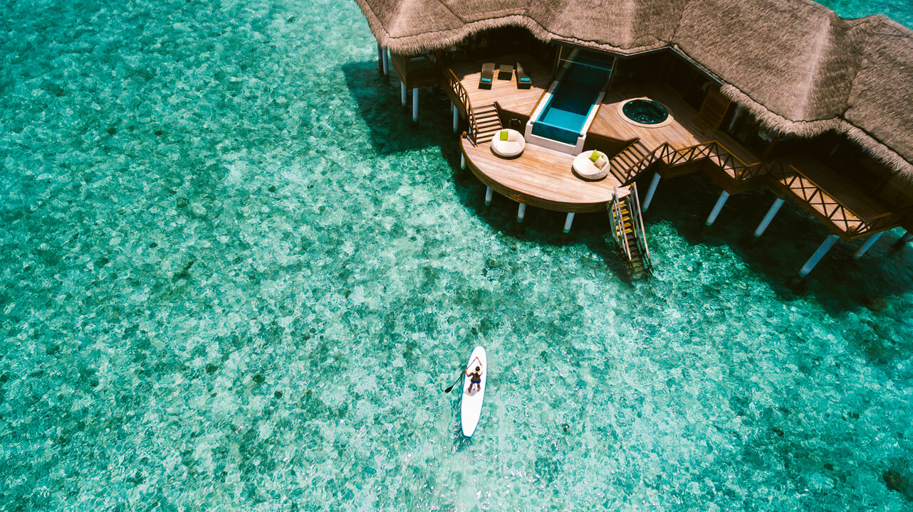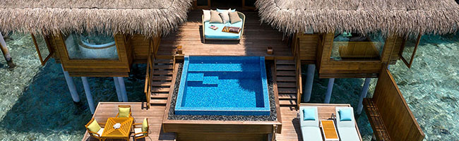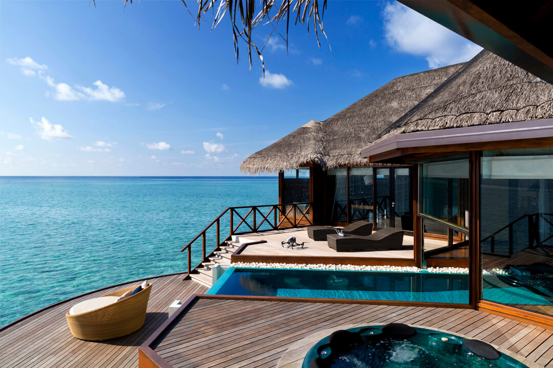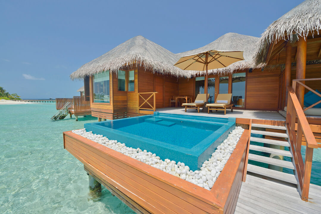 Übernachte direkt über dem Meer in einem Bungalow auf Stelzen und sei umgeben vom azurblauen Wasser. Nutze dem direkten Meerzugang von der Terrasse oder schwimme in dem Tauchbecken auf der Terrasse und genieße die atemberaubende Schönheit der Natur. Der Lagoon Bungalow with Pool bietet Dir mit der Ausrichtung nach Osten den perfekten Blick für den frühen Sonnenaufgang und somit den perfekten Start in den Tag.