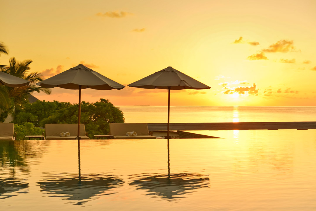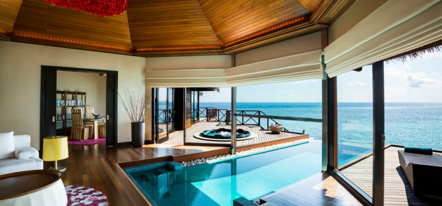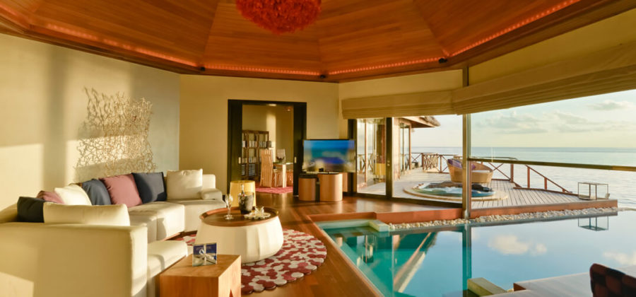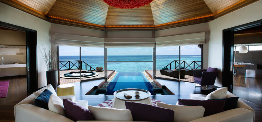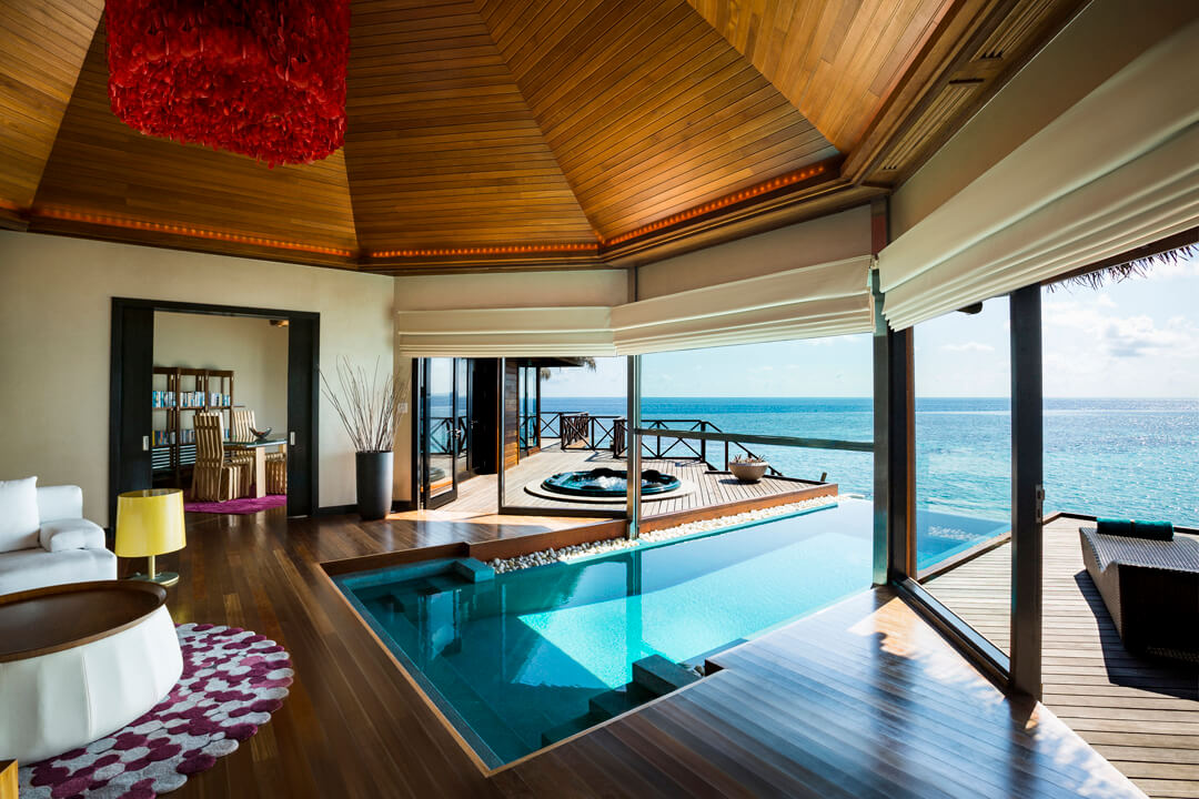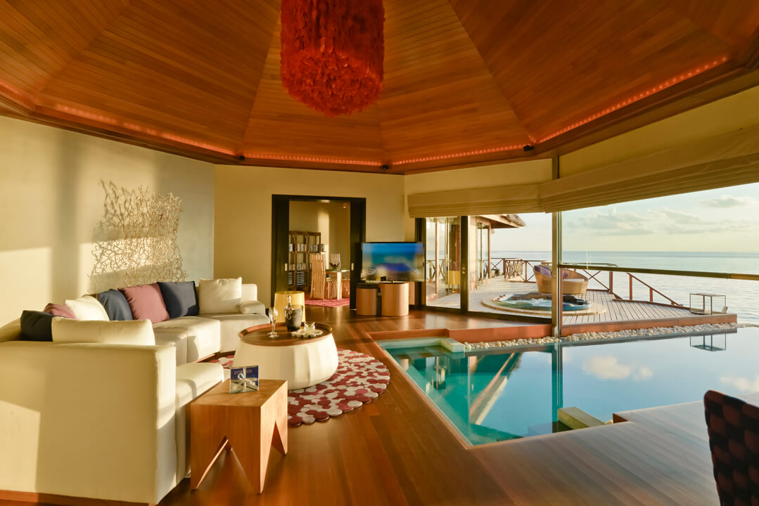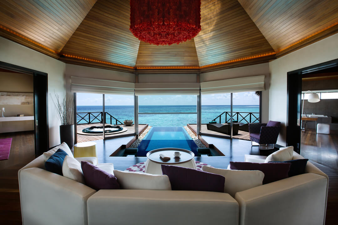 Schwimme im Infinity Pool und blicke dabei auf die weiten des Ozeans. Der große Two-Bedroom Ocean Pavilion with Pool bietet ausgiebig Platz für Ruhe und Privatsphäre. Genieße 330 Quadratmeter Wohnfläche, eine große Terrasse, die zum Verweilen einlädt und steige direkt ins kristallklare Wasser. Das Besondere an dem Pavilion ist, dass sich der Infinity Pool über den Inn- und Außenbereich erstreckt, somit kannst du direkt aus dem Wohnzimmer nach draußen schwimmen und die Kühle des Wassers, sowie die Wärme der Sonne genießen.