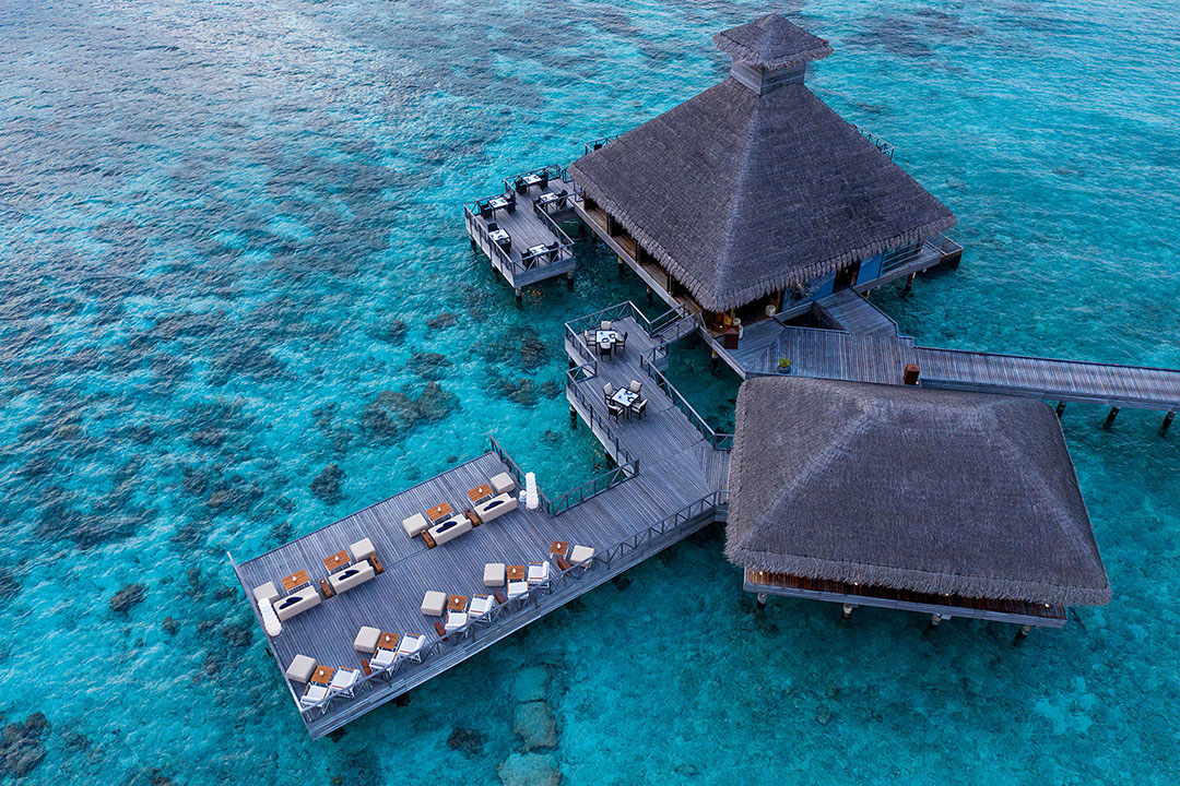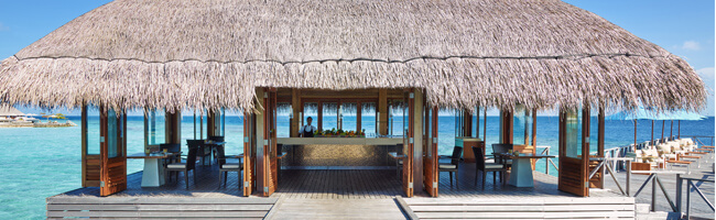 Wenn Du schon immer mal einen leckeren Drink an einer edlen Strandbar genießen wolltest, dann ist die Umbar des Huvafen Fushi Maldives einen Besuch Deinerseits auf jeden Fall wert! Der feine weiße Sandboden, die bequemen Sitzmöglichkeiten und eine Vielzahl an leckeren und fruchtigen Getränken verleihen dieser Bar einen ganz besonderen Charme und machen sie vor allem am Abend zu einem beliebten Treffpunkt der Gäste. Mit einem leckeren Cocktail den Abend bei Meeresrauschen unter dem Sternenhimmel ausklingen lassen – ein Bild, das für sich selbst spricht!