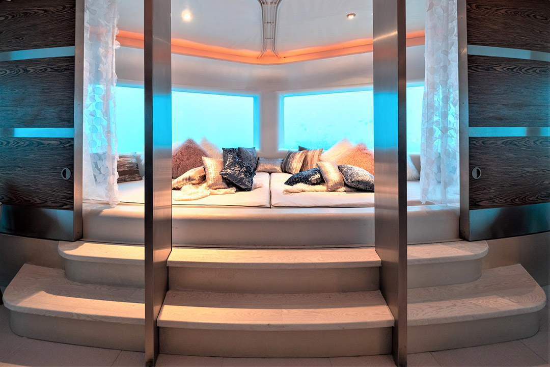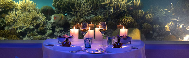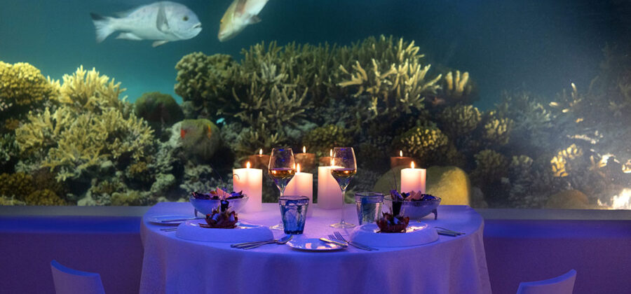 Acht Meter unter dem Meer, kannst du im Immerse…Latitude 4° das weltweit einzige private Dinner unter Wasser erleben. Lasse dich mit einem, auf dich zugeschnittenen Menü verwöhnen und genieße, 4° vom Äquator entfernt, den atemberaubenden Blick auf die Unterwasserwelt der Malediven.