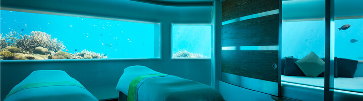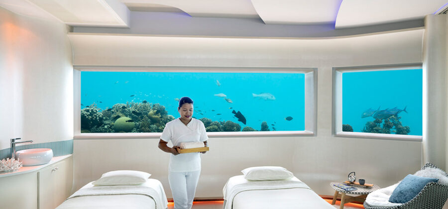 Das Huvafen Fushi Maldives ist ein 6-Sterne-Resort, welches dank seiner luxuriösen Unterkünfte und einer insgesamt sehr edlen und exquisiten Hotelanlage großen Gefallen bei seinen Gästen findet. Ein besonderes Highlight des Resorts: Es ist es das Zuhause des einzigen Unterwasser-Spas der Welt!