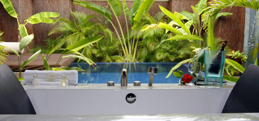 Erlebe Deine eigene Oase der Ruhe in dem Deluxe Beach Bungalow with Pool. Vorne kannst Du auf der Terrasse sitzen und über den Strand bis hin zum Meer blicken, oder in den privaten Infinity Pool steigen und Dich dort abkühlen. Hinten am Bungalow gibt es einen privaten Hinterhof mit Daybed und Pool, direkt angeschlossen an das offen gestaltete Badezimmer. Lass es Dir gut gehen und genieße die luftigen Räumlichkeiten und das Rauschen des Meeres.