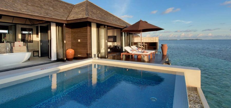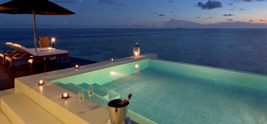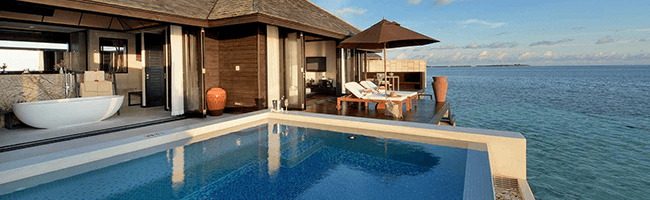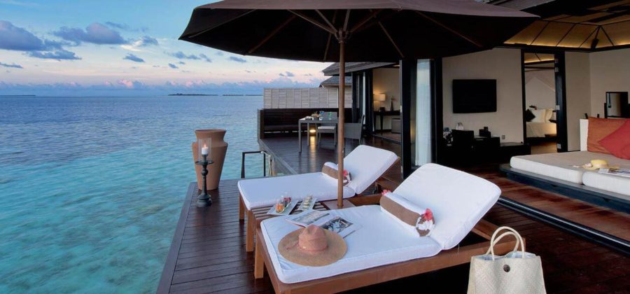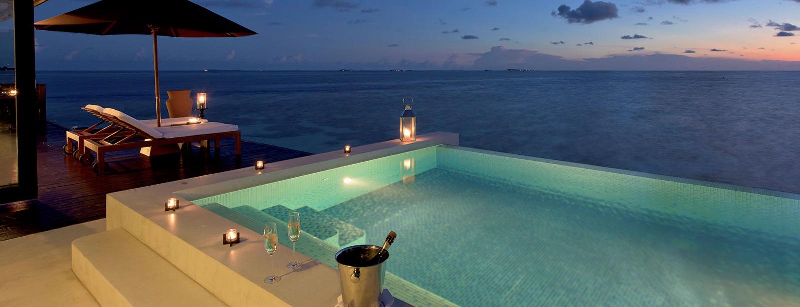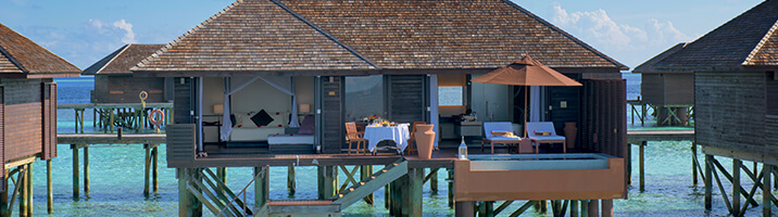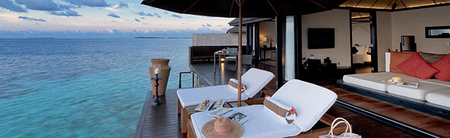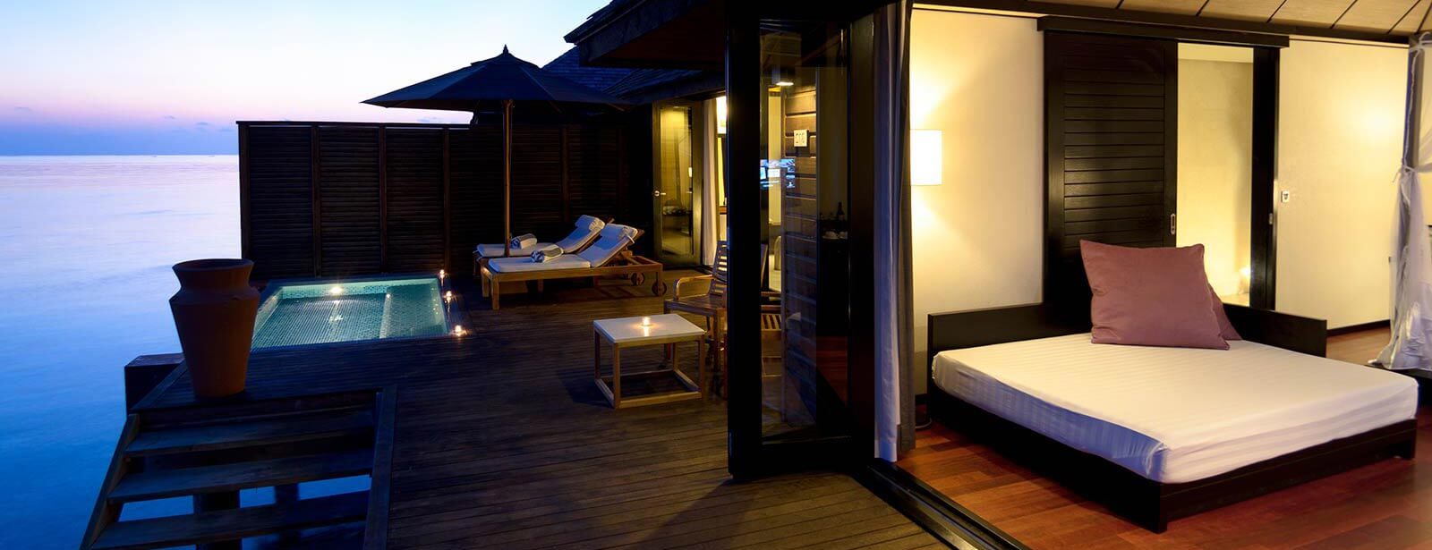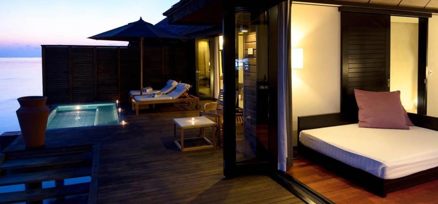 Die Sunset Water Villa im Malediven Lily Beach bietet mit 182 qm noch mehr Platz als die Deluxe Water Villa. Wie der Name schon sagt, liegen diese Unterkünfte zur Sonnenuntergangsseite und bieten damit Abend für Abend einen atemberaubenden Anblick. So kannst du in dieser Unterkunft in einem traumhaften Pool liegen und dabei den wunderschönen Sonnenuntergang genießen. Die Ausstattung der Sunset Water Villa ist übrigens dieselbe wie in der Deluxe Water Villa. Der einzige Unterschied: Die Sunset Water Villen sind größer und verfügen über einen zusätzlichen Butler-Service.