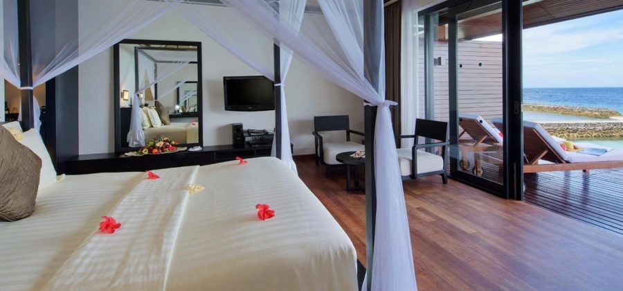 Die Lagoon Villen im Lily Beach Resort Malediven besitzen rund 90 qm Wohnfläche und sind halb ins Meer hineingebaut. Bei gleicher Ausstattung wie die Beach Villen verfügen sie zusätzlich über ein Himmelbett, statt des klassischen Doppelbettes, und über einen direkten Zugang zur Lagune von der Terrasse. Einfach traumhaft: Aufwachen, aufstehen und mit nur wenigen Schritten sofort im Meer baden oder sogar gleich schnorcheln können und dabei die atemberaubende Unterwasserwelt jeden Tag erleben. So etwas erlebst Du nur in einem Resort auf den Malediven.