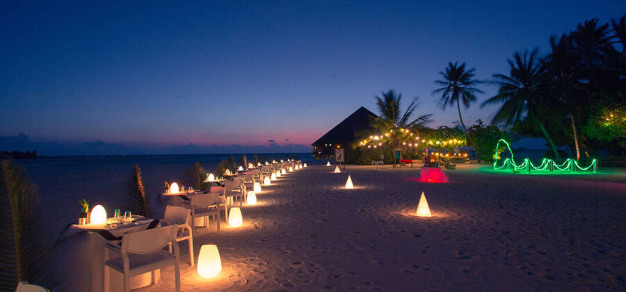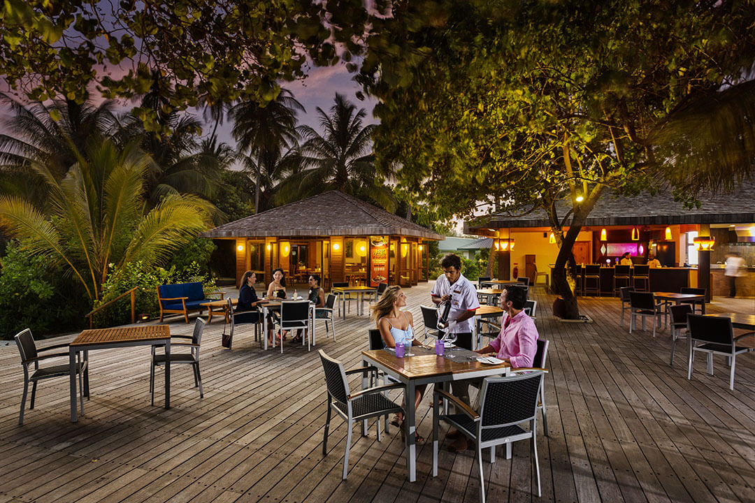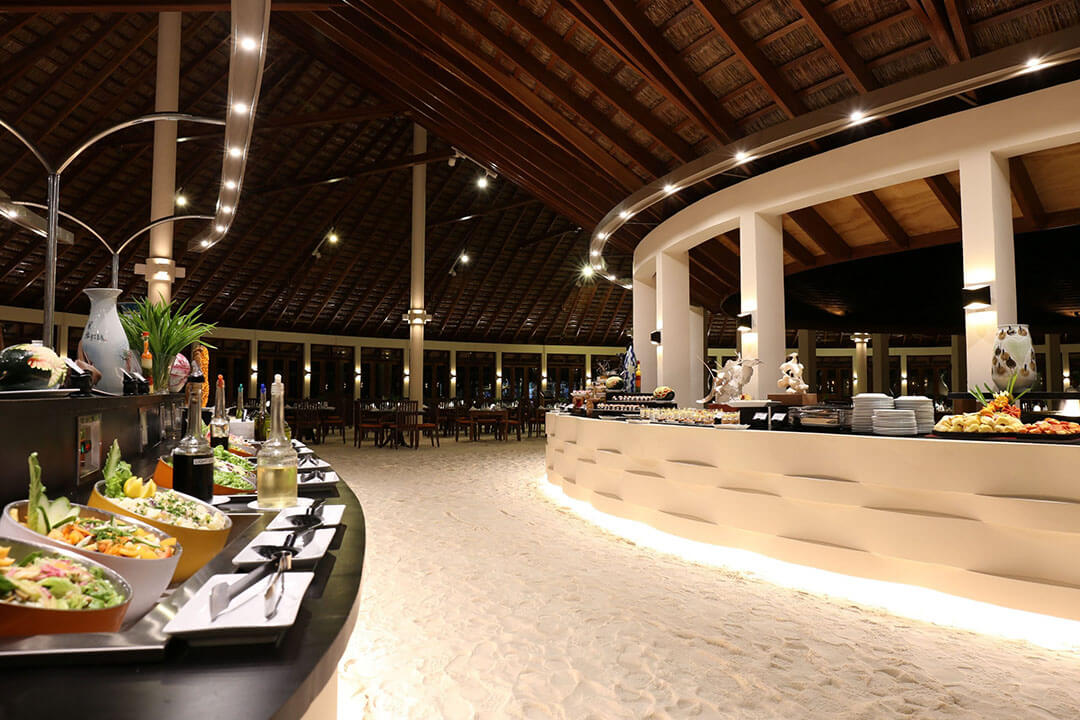 Das Farivalhu Restaurant ist für Gäste gedacht, die in den Garten Zimmern, den Beach Villen, den Jacuzzi Beach Villen und den Jacuzzi Wasser Villen untergebracht sind. Das Restaurant ist im Zentrum der Insel untergebracht und im Open Air Stil mit Sandboden gestaltet. Ein perfektes Ambiente also, um die kulinarischen Köstlichkeiten des Restaurants im Malediven Urlaub zu genießen.