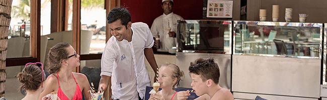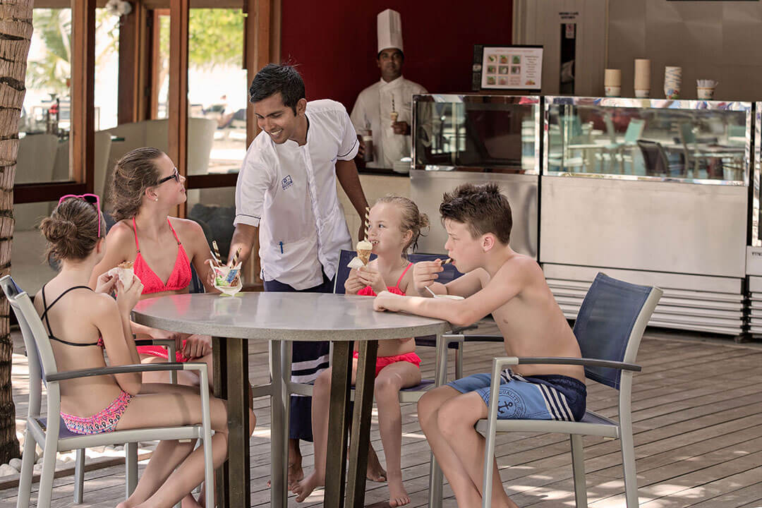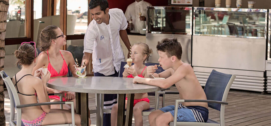Im Meeru Café bekommst Du Sandwiches, Eis, Kuchen, verschiedene Kaffee- und Teekreationen. Hier kannst Du am Nachmittag nach einem anregenden Ausflug wunderbar einen kleinen Snack genießen oder ein Stück Kuchen essen, Dich entspannen und Deinen Durst dann direkt an der zugehörigen Dhoni Bar stillen.