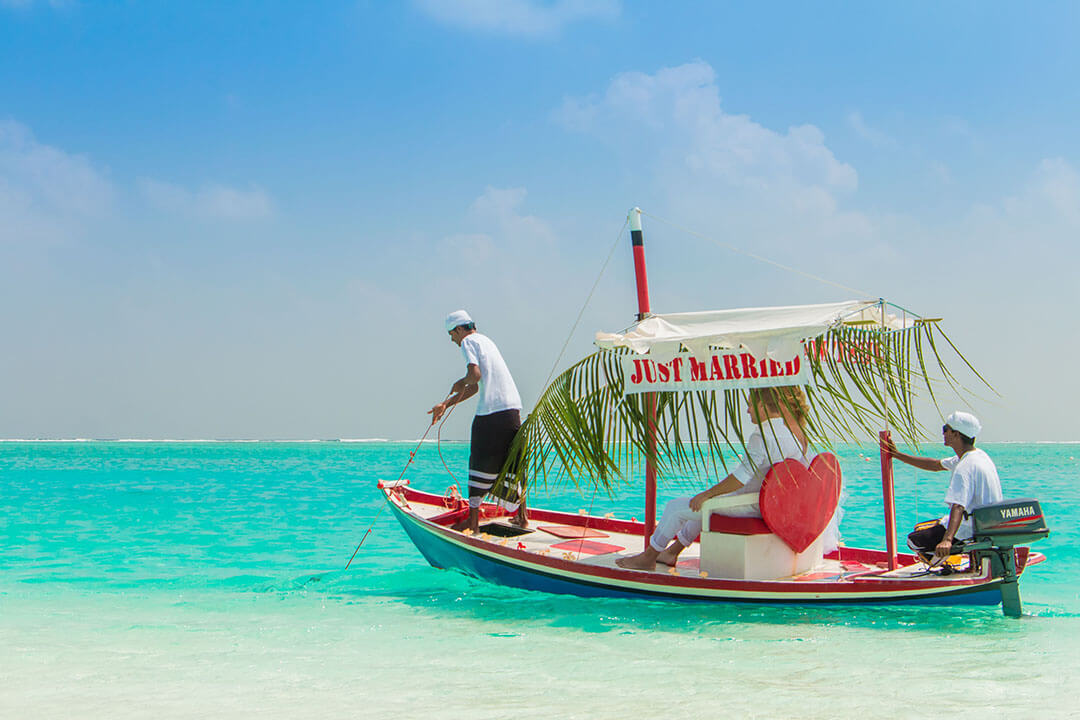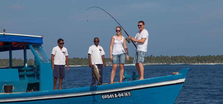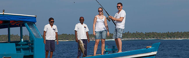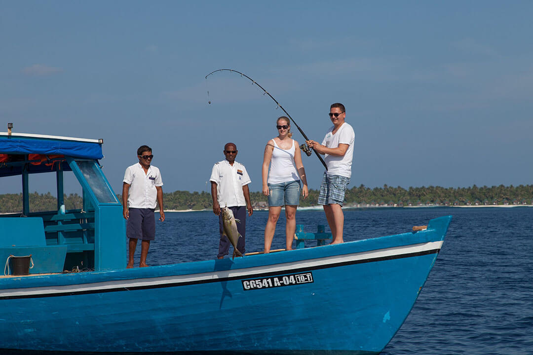 Auf der Robinson-Crueso-Sandbank-Exkursion verbringen Du und Dein Schatz allein auf einer verlassenen, großen Sandbank einen unvergesslichen Tag – natürlich mit ausreichend Verpflegung und die Gewissheit, dass ihr am Abend wieder abgeholt werdet. Und wer selbst gern einmal für seine Verpflegung sorgen möchte, der kann an einem der zahlreichen Angelausflüge, die im Malediven Meeru Island Resort angeboten werden, teilnehmen.