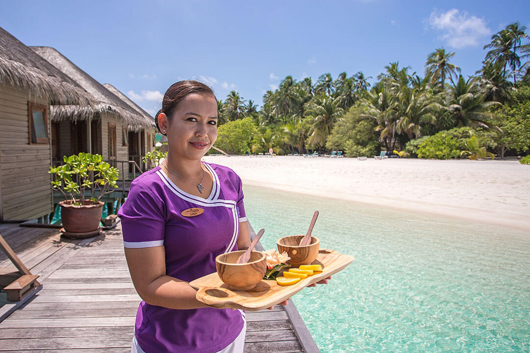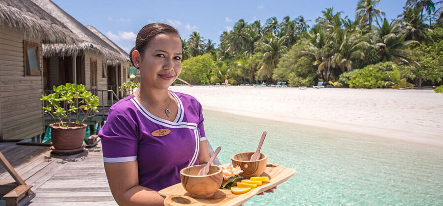 Viele Anwendungen des Duniye Spa kommen aus dem asiatischen Bereich, sind aber zum Teil auch in Deutschland durch Wellnessoasen, die sich der asiatischen Wellnessphilosophie verschrieben haben, bereits bekannt. Stress abbauen und Zufriedenheit fördern, das soll durch die Massagen und Anwendungen im Duniye Spa erreicht werden. Tauche ein in die Welt der Entspannung und erfahre selbst, inwieweit es Dir besser geht, wenn Körper und Geist wieder etwas mehr in Einklang miteinander gebracht wurden. Übrigens, es gibt auf der Insel zwei Spa-Bereiche. Einer ist im Süden der Insel und ganz normal auf dem Land angesiedelt – der andere liegt im Norden und ist ein Over-Water-Spa, also eine Einrichtung, die auf Stelzen ins Meer hineingebaut wurde. Die Ruhe und Kraft des Ozeans in unmittelbarer Nähe fördert hier noch einmal die positiven Wirkungen der Anwendungen.