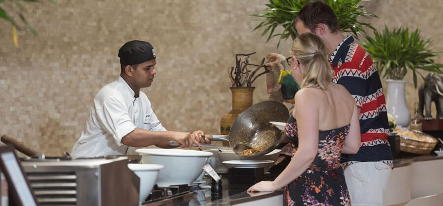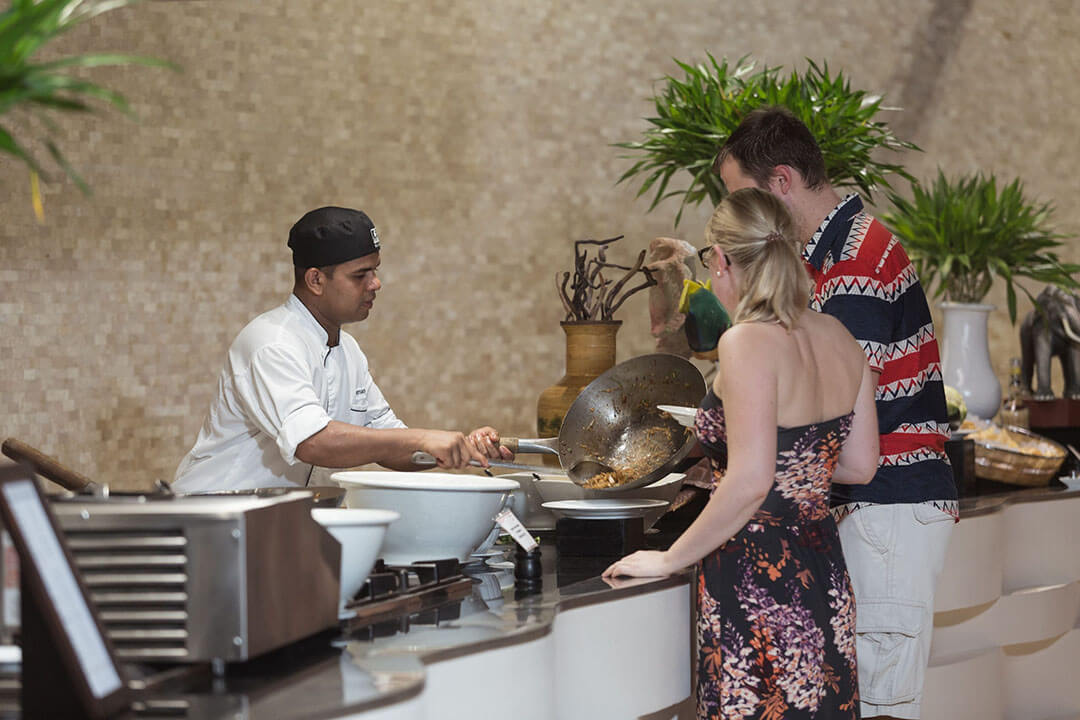 Vier verschiedene À-la-carte-Restaurants runden das kulinarische Angebot des Meeru Malediven gekonnt ab. Das Asian Wok Restaurant ist auf asiatische Spezialitäten aller Art ausgerichtet. Das Restaurant, das auf Stelzen ins Meer gebaut wurde, bietet Mittag- und Abendessen á la carte an. Ein besonderes Highlight ist das Dinner on Beach, das hier angeboten wird. Ein Kellner kümmert sich während des abendlichen Dinners ausschließlich um Eure Wünsche und Belange.